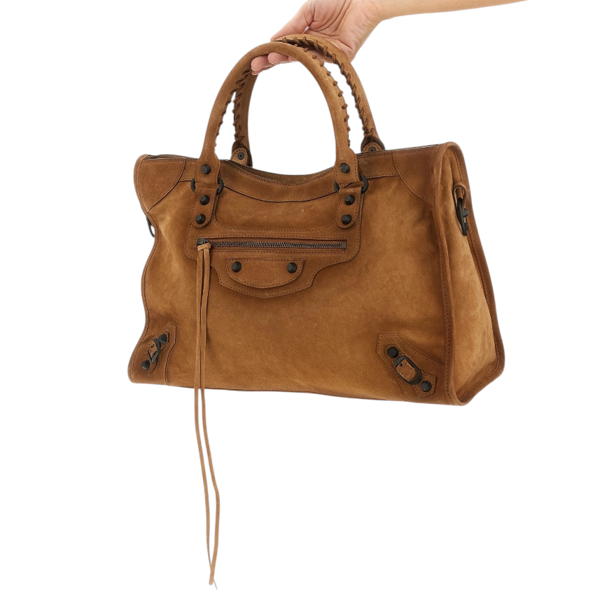 Balenciaga 823058 Le City 麂皮中款機車包 焦糖色