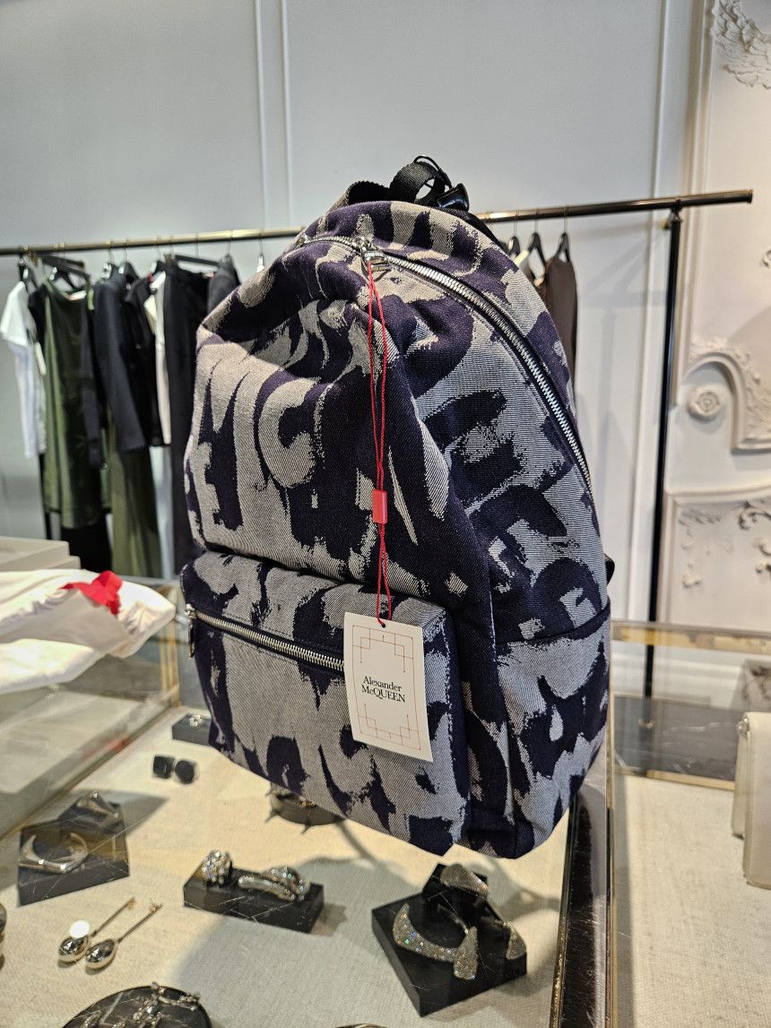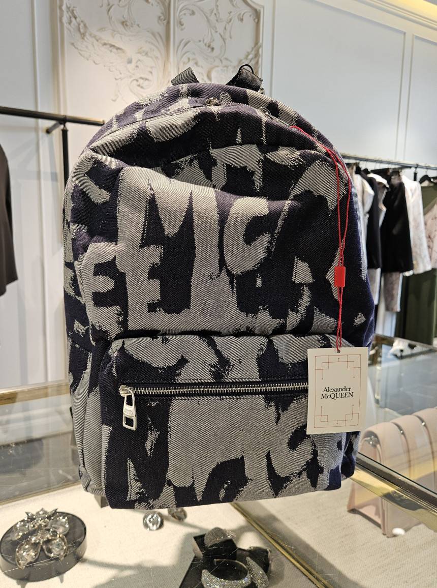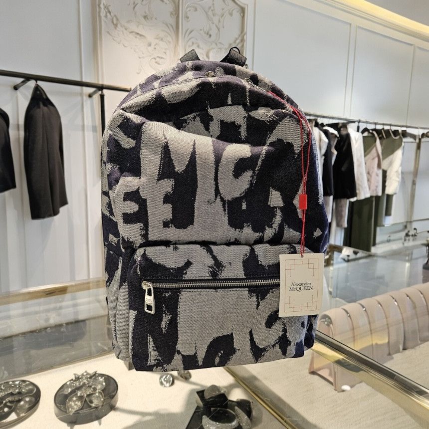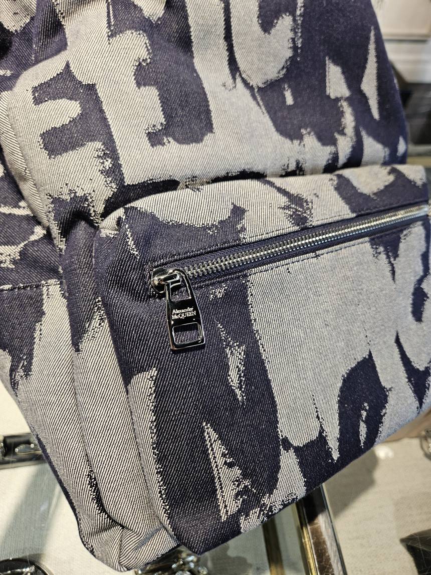 Alexander McQueen 麥昆 丹寧塗鴉大型後背包