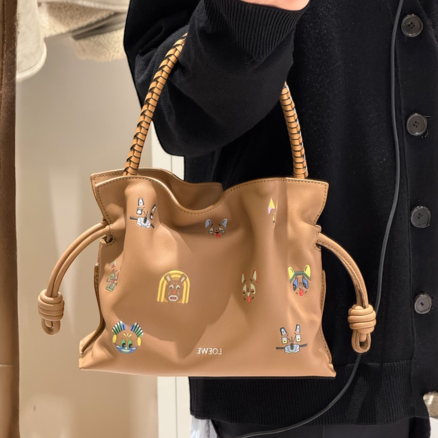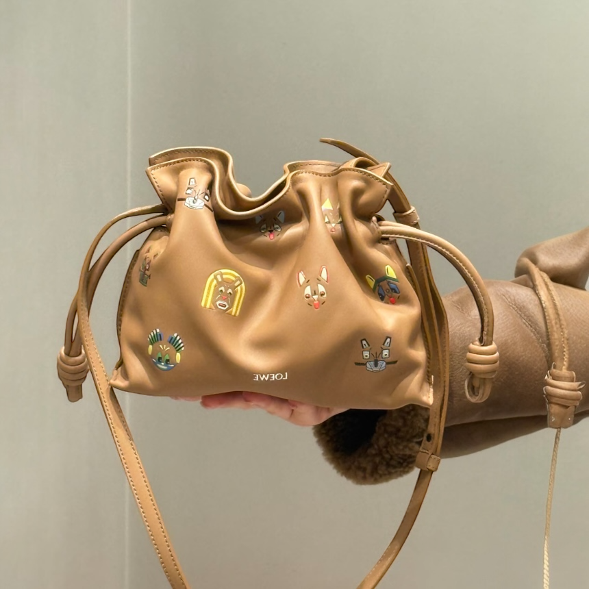 Loewe 小款 Cats Flamenco Nappa 小牛皮束口手拿包 Mocha