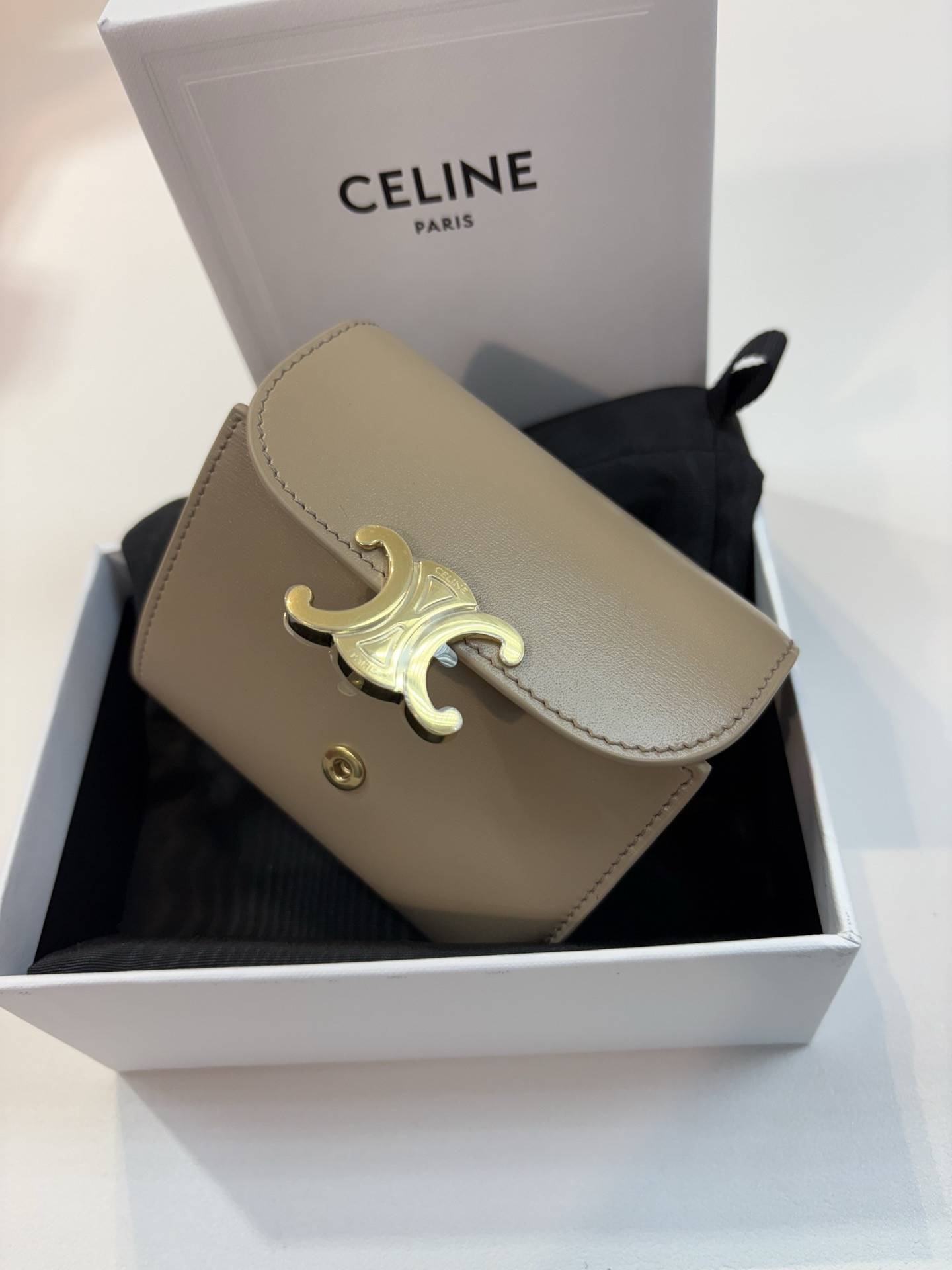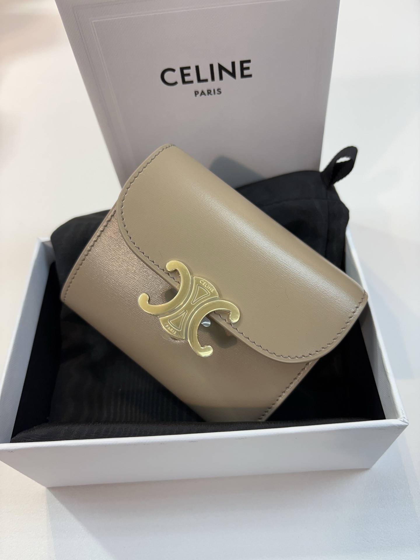 Celine 10D783 凱旋門光滑羊皮小型翻蓋短夾