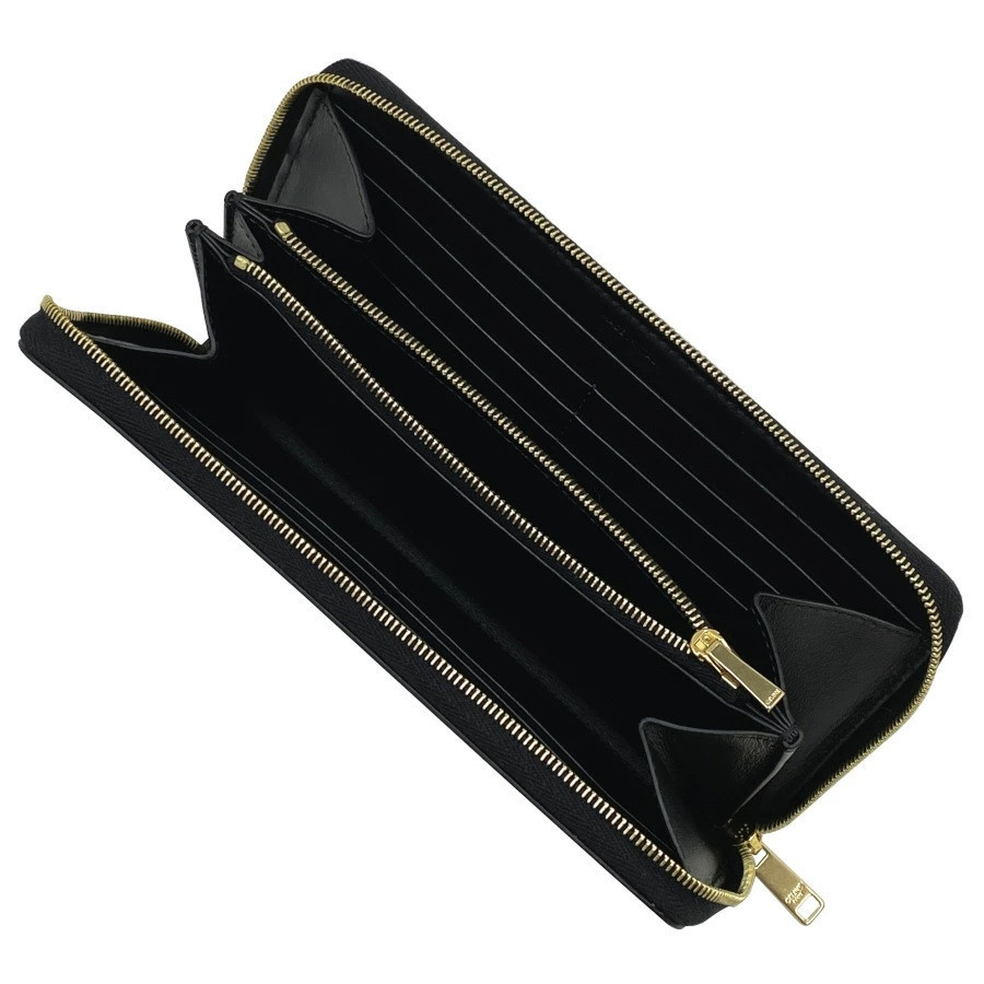 Celine 10D783 標誌印花大款拉鍊錢包/長夾 黝黑色