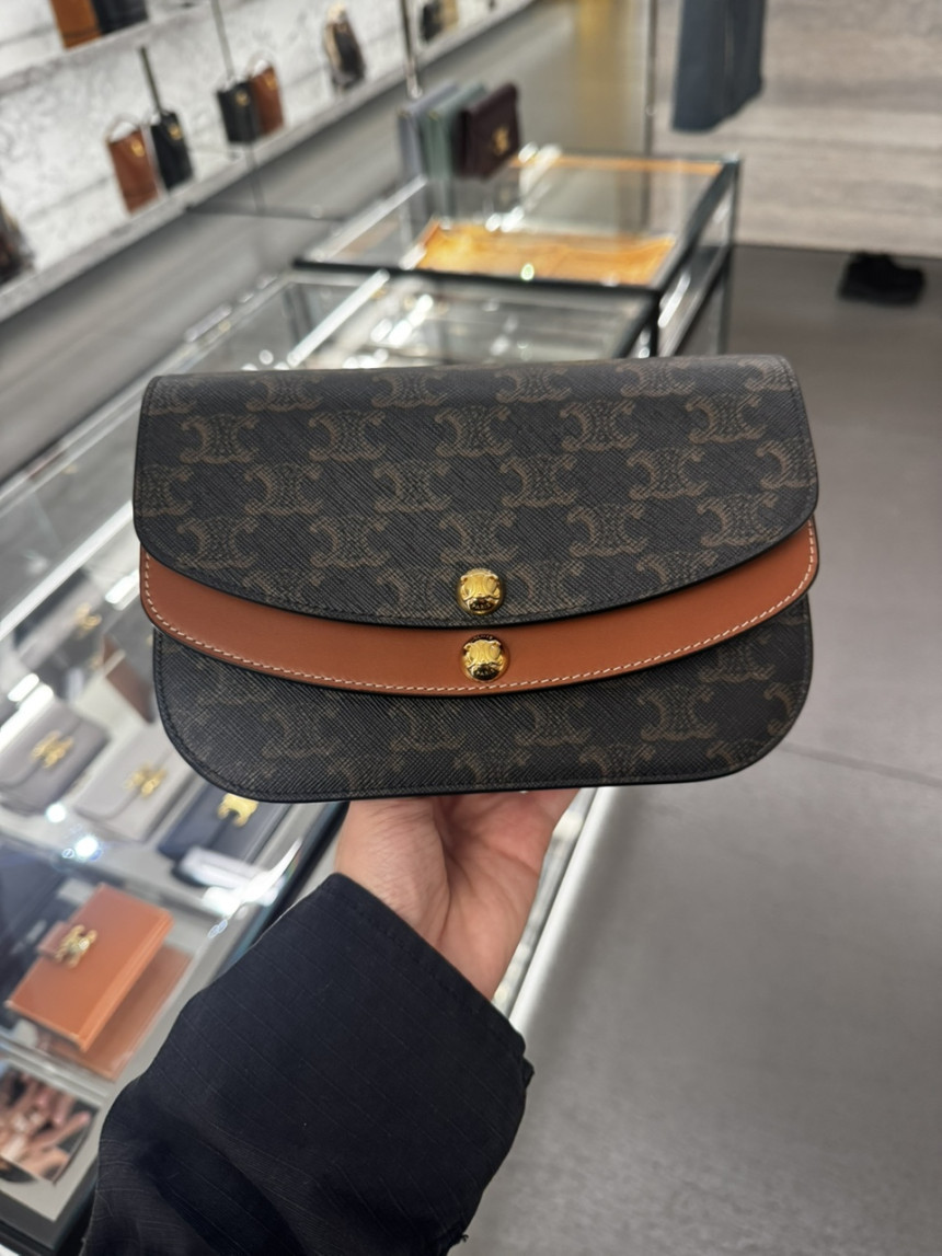 Celine 10P672 標誌老花 DUO 標牛皮革飾帶錢包