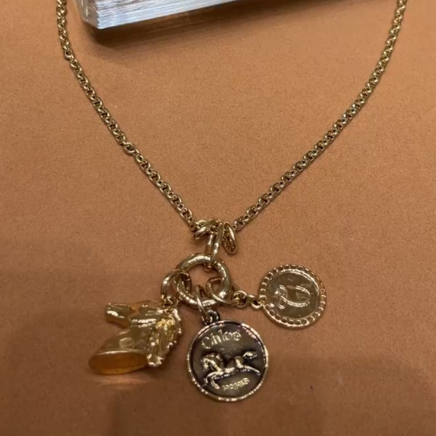 Chloe Charms 馬首錢幣幸運黃銅吊飾項鍊