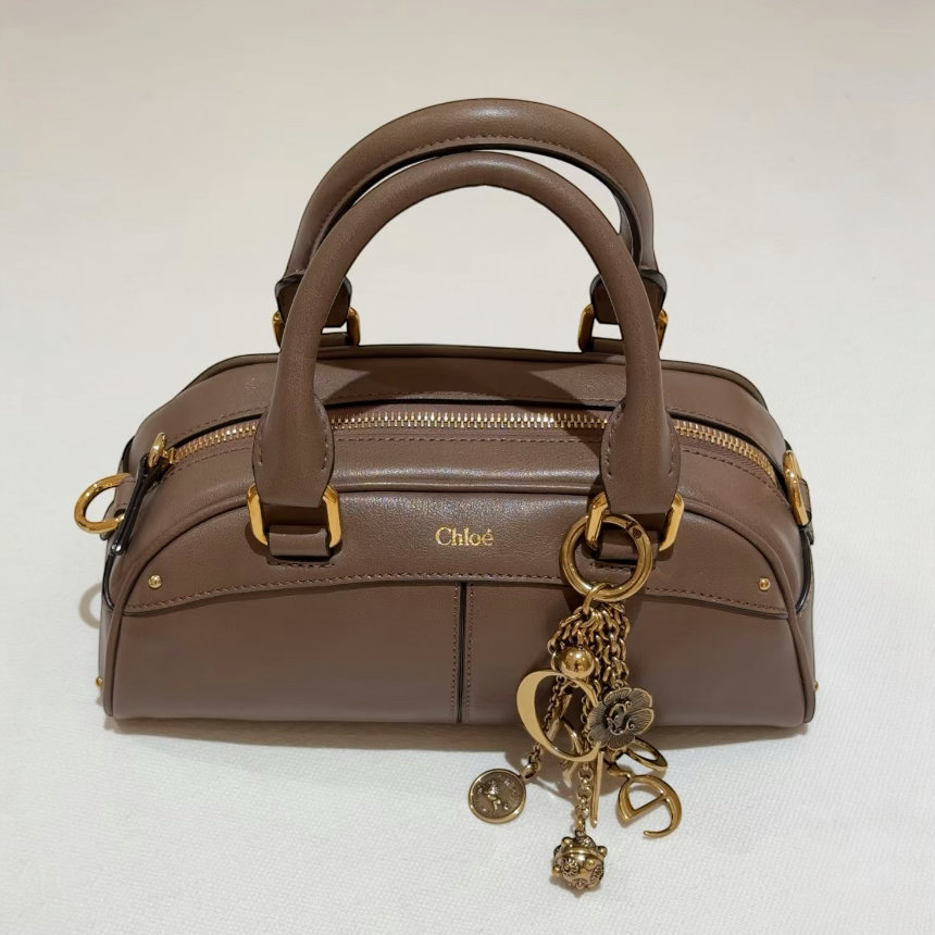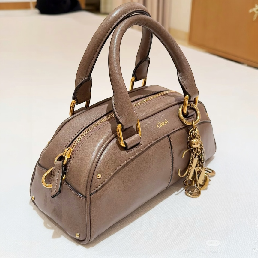 Chloe 小款柔軟小牛皮 Bowling 保齡球包 Deep Taupe 深太妃糖色