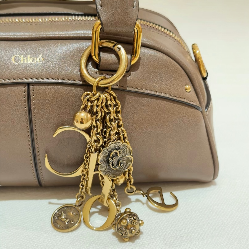 | 金色調可拆式鑰匙圈點綴 Chloé 字母與垂墜飾件, |