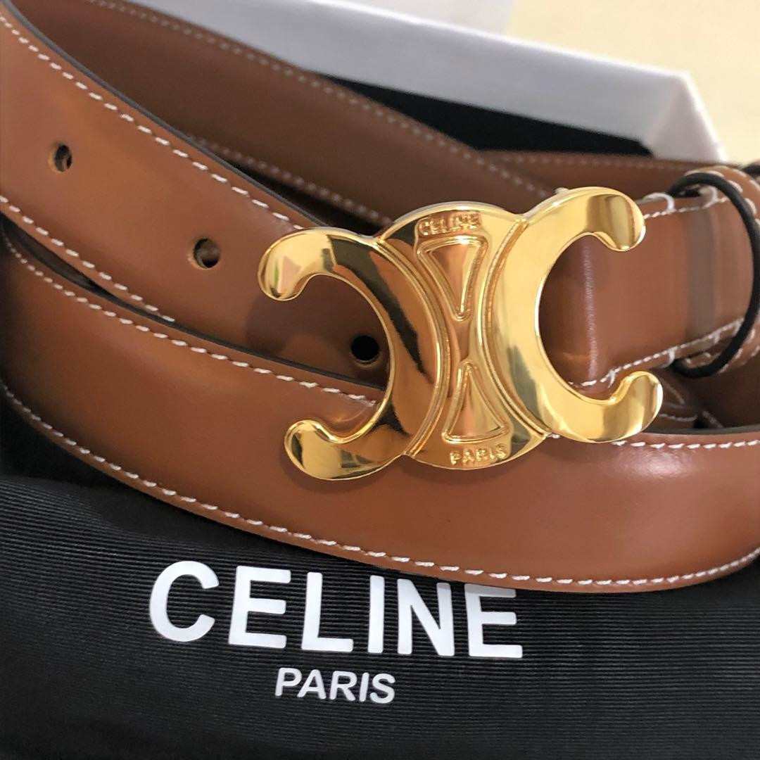 Celine Triomphe腰帶以頂級天然小牛皮精心打造,