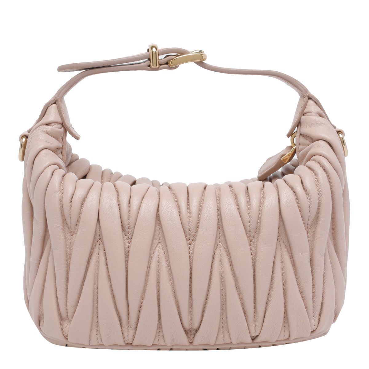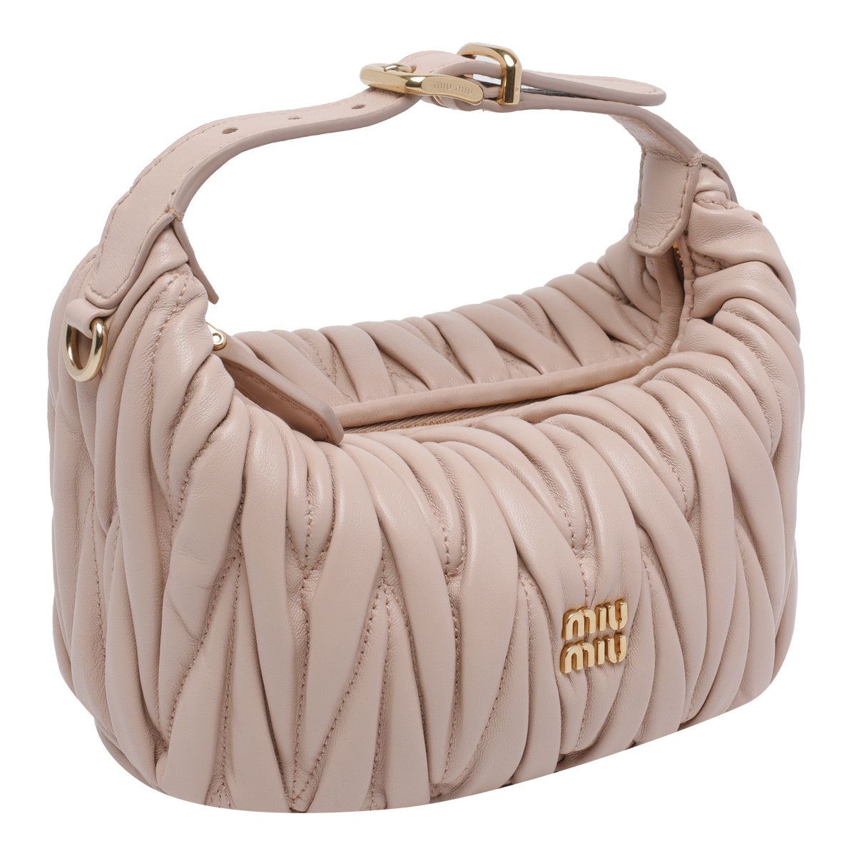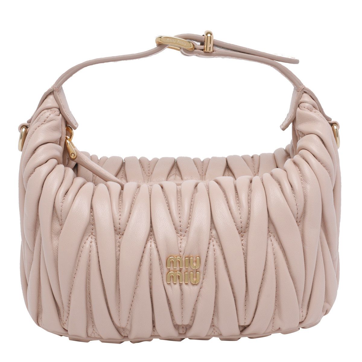 Miu Miu 5BP100 Matelassé 納帕軟皮皺摺化妝飯盒包 可延長肩帶/粉色