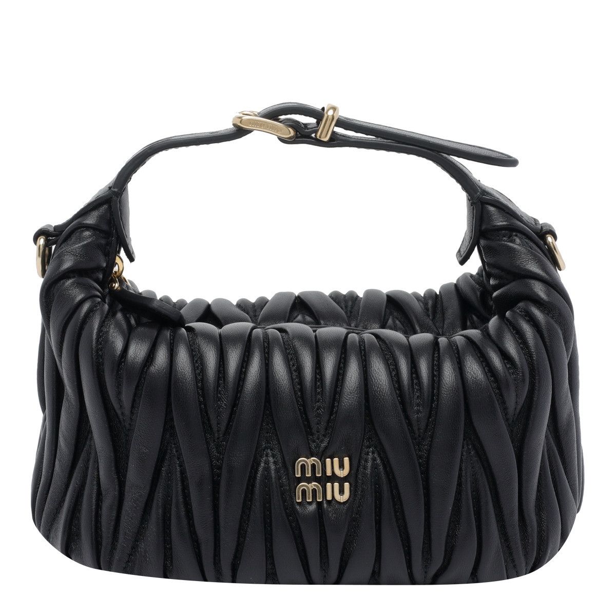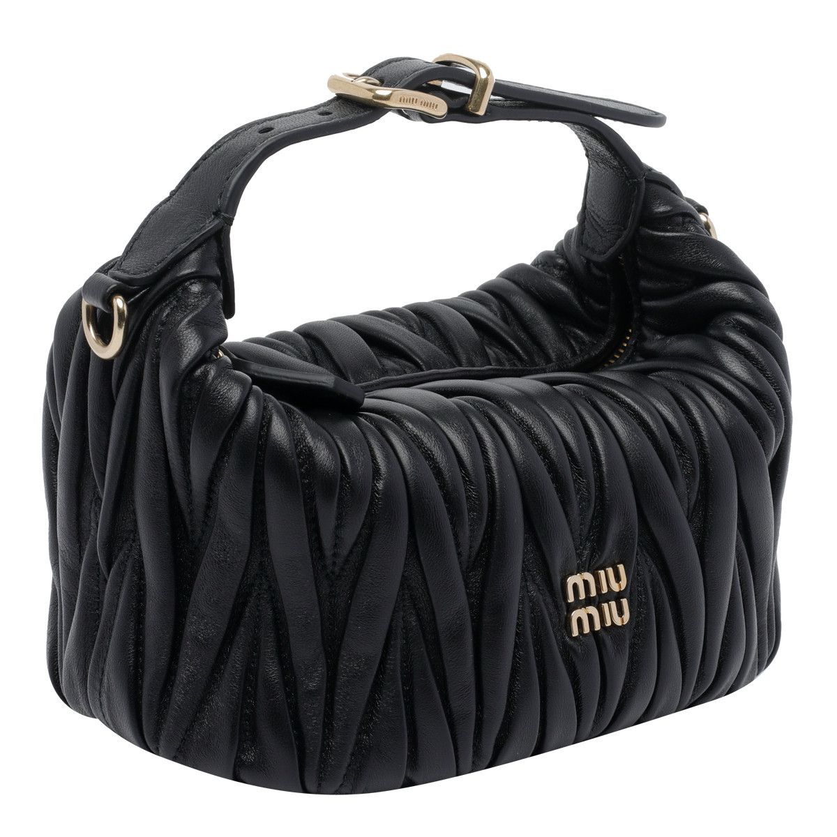 Miu Miu 5BP100 Matelassé 納帕軟皮皺摺化妝飯盒包 可延長肩帶/黑色