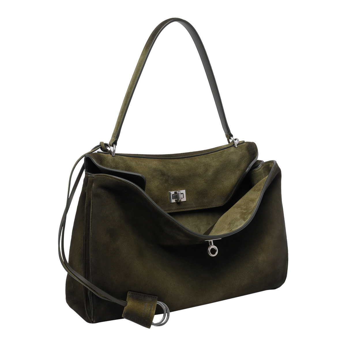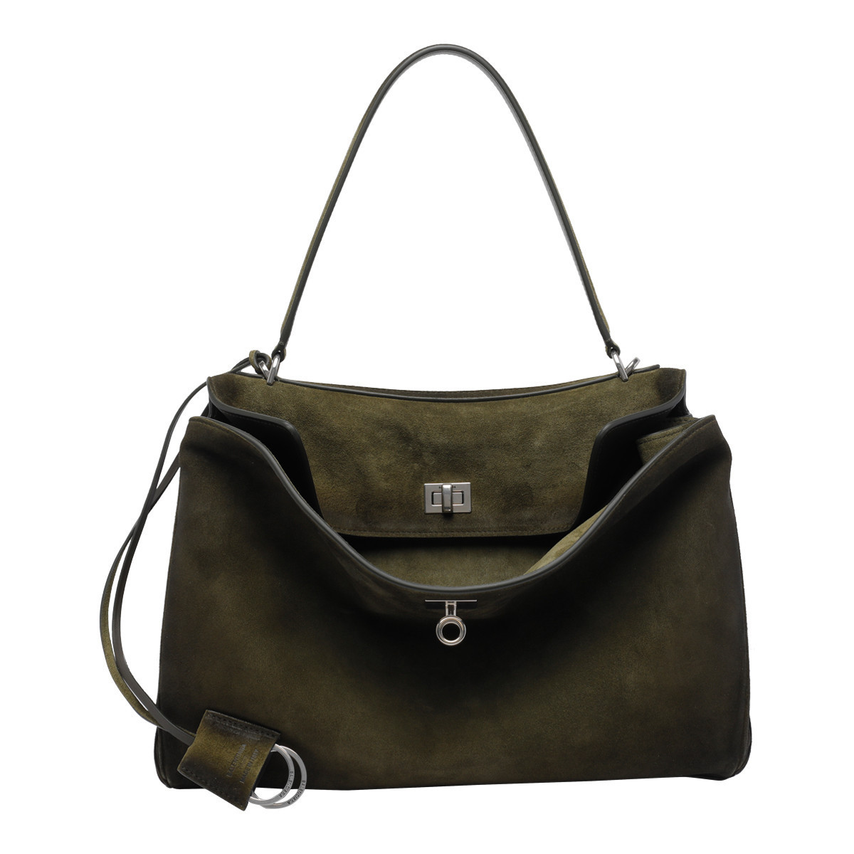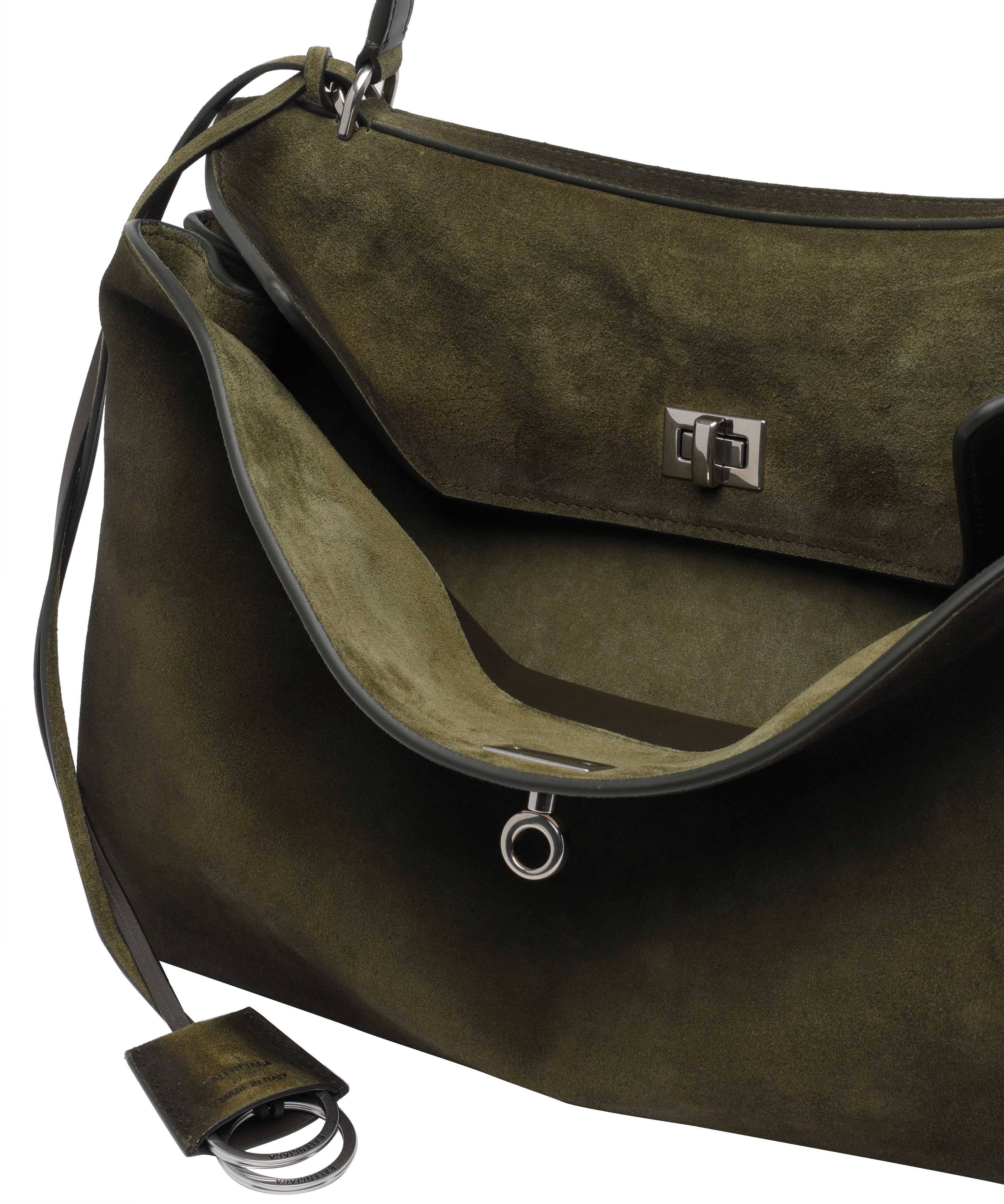 Balenciaga 789772 麂皮中款 Rodeo 包 卡其綠色/復古銀釦