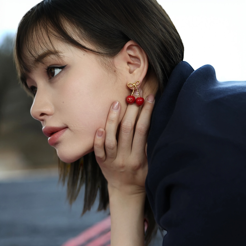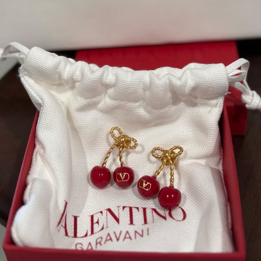Valentino, 櫻桃耳環, 琺瑯耳環, VLOGO SIGNATURE, 精品耳環, 義大利製造