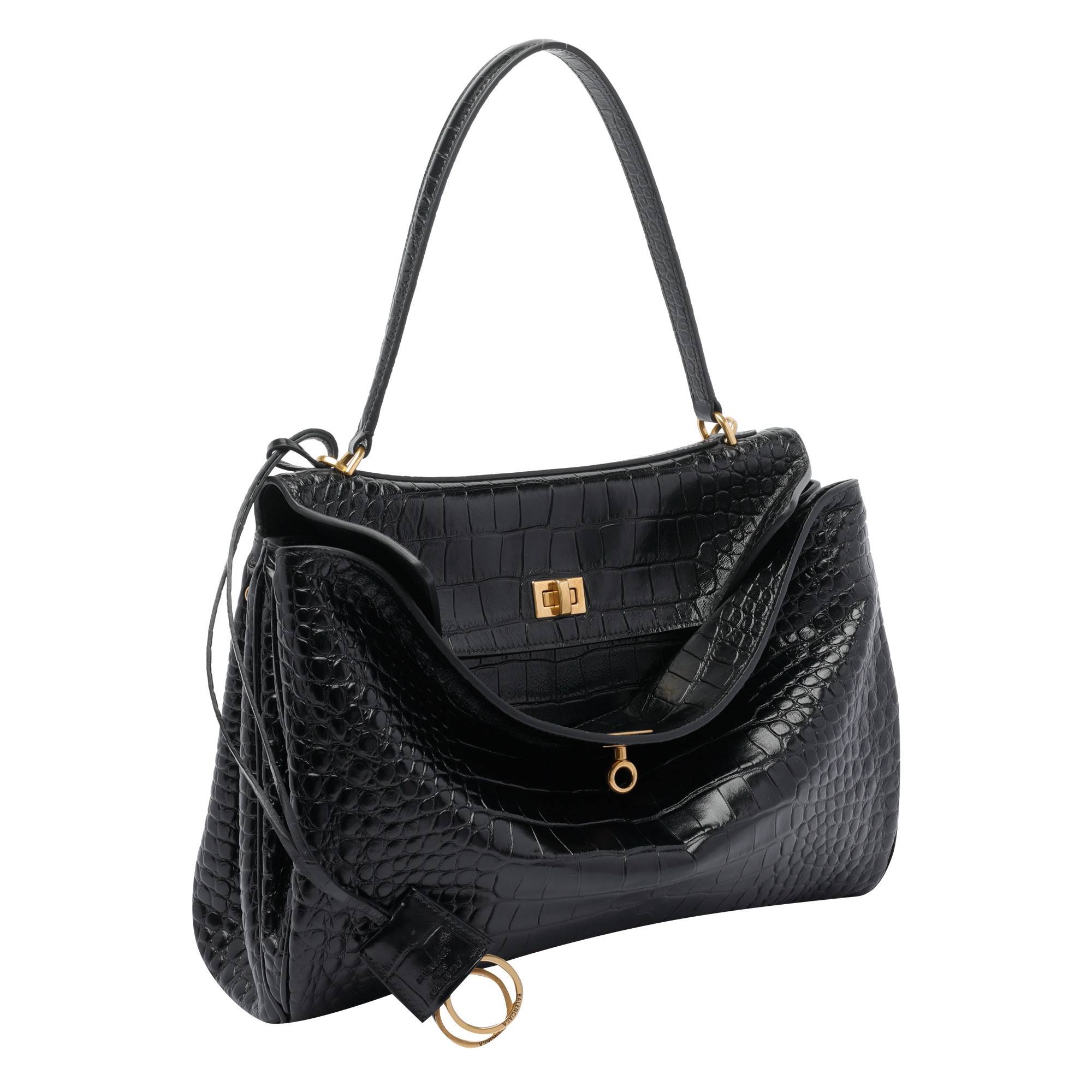 Balenciaga 789772 鱷魚紋小牛皮中款 Rodeo 包 黑色/復古金釦