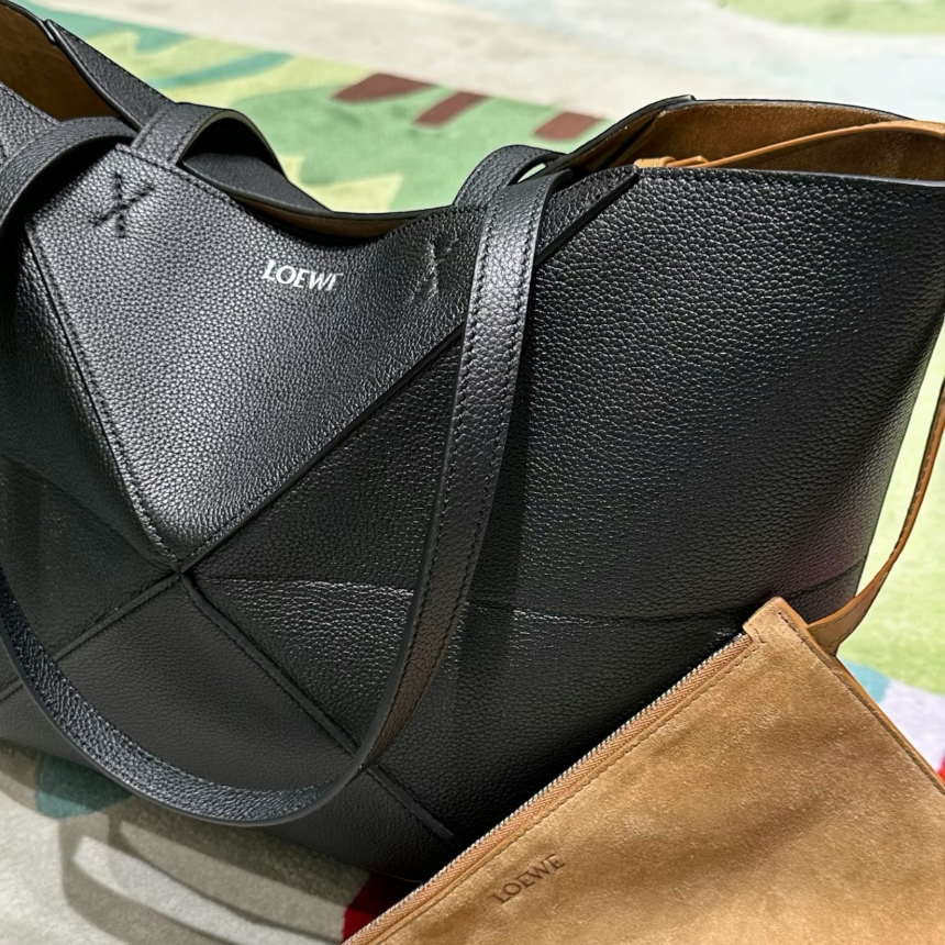 Loewe 柔軟粒面小牛皮 大款 Puzzle Fold 橫式托特包 黑色