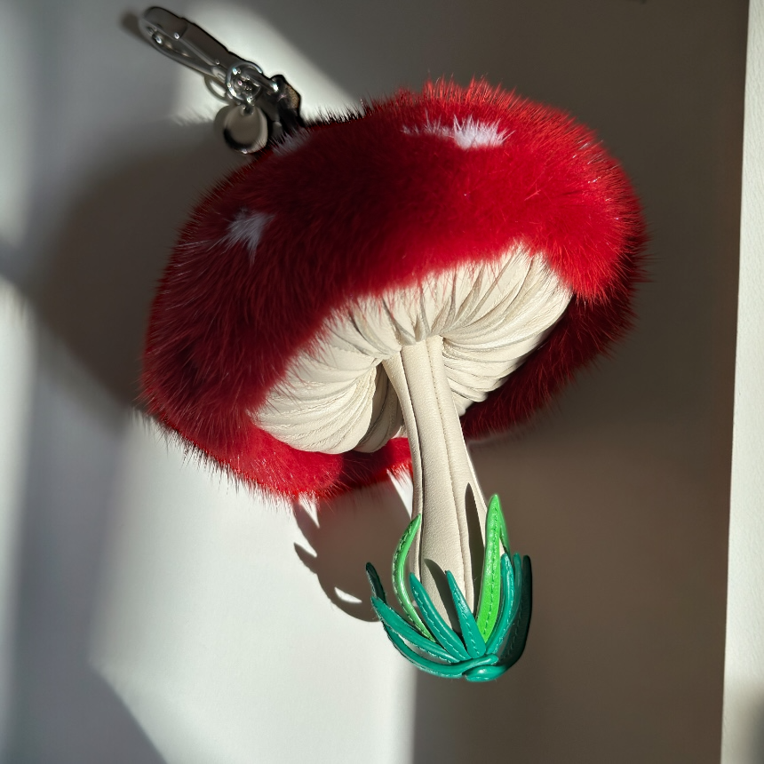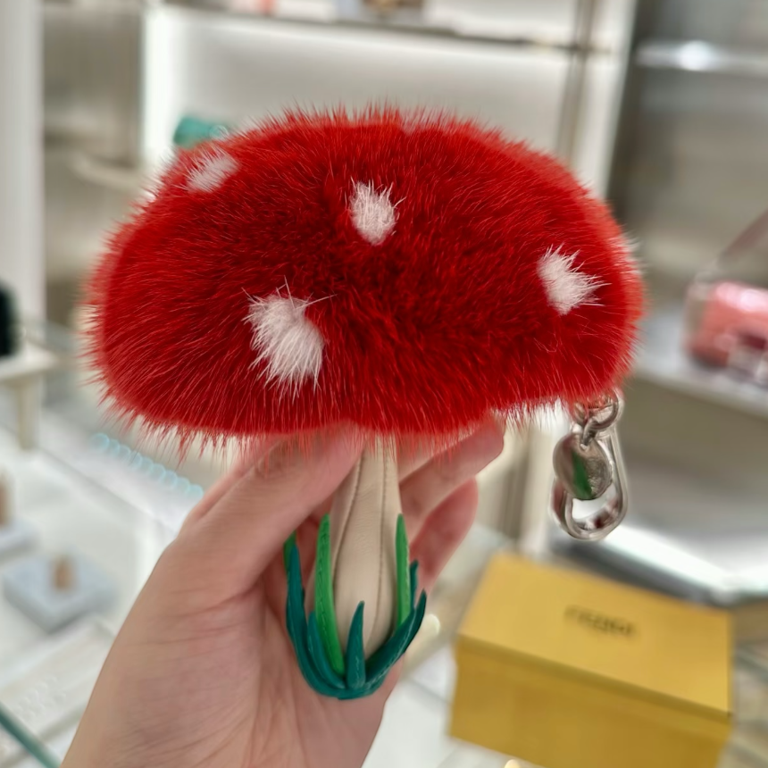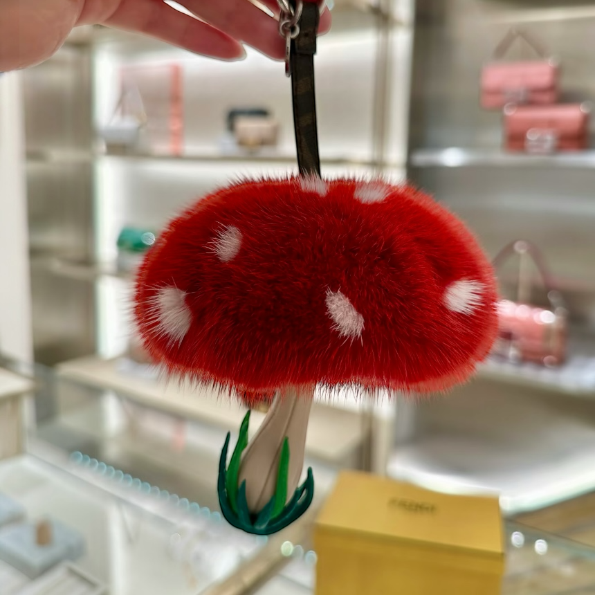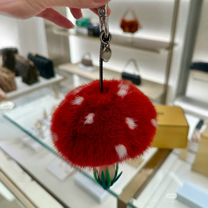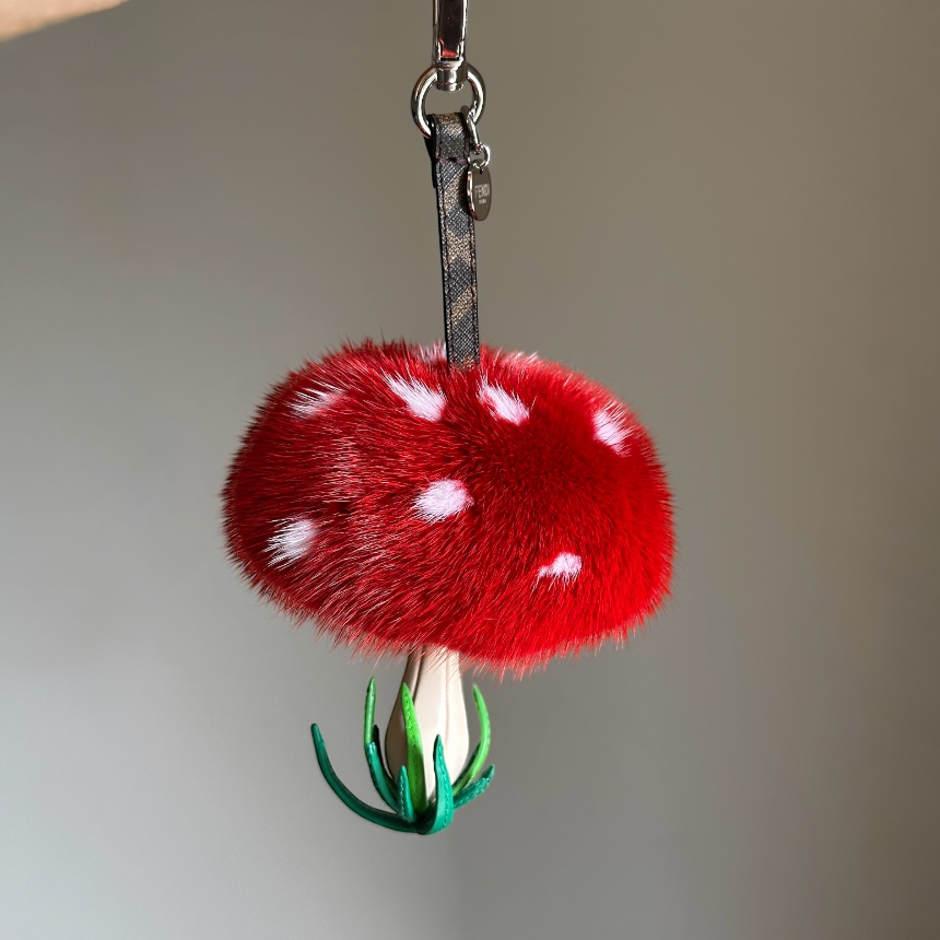 Fendi 7AS406 拼色皮革與紅色貂毛蘑菇造型吊飾