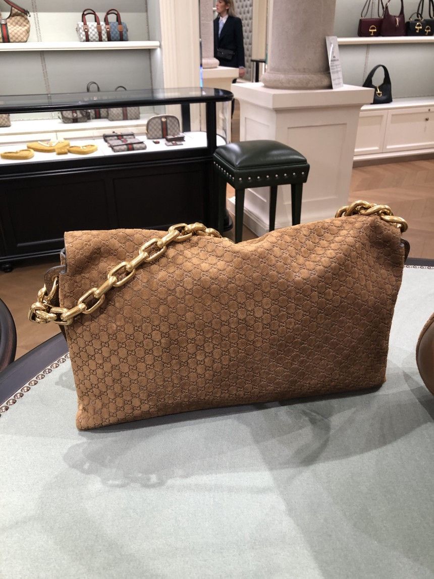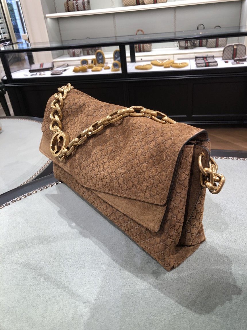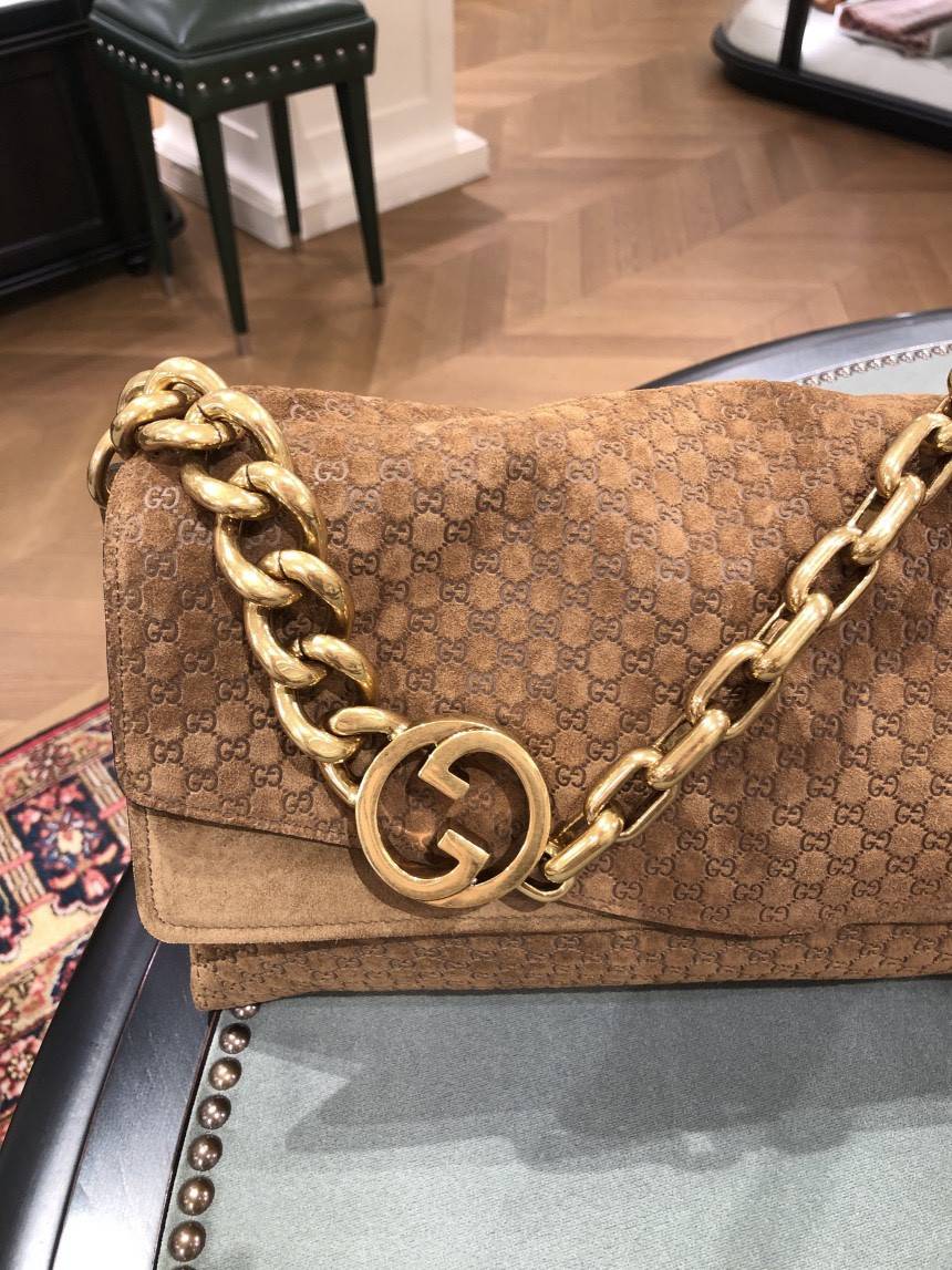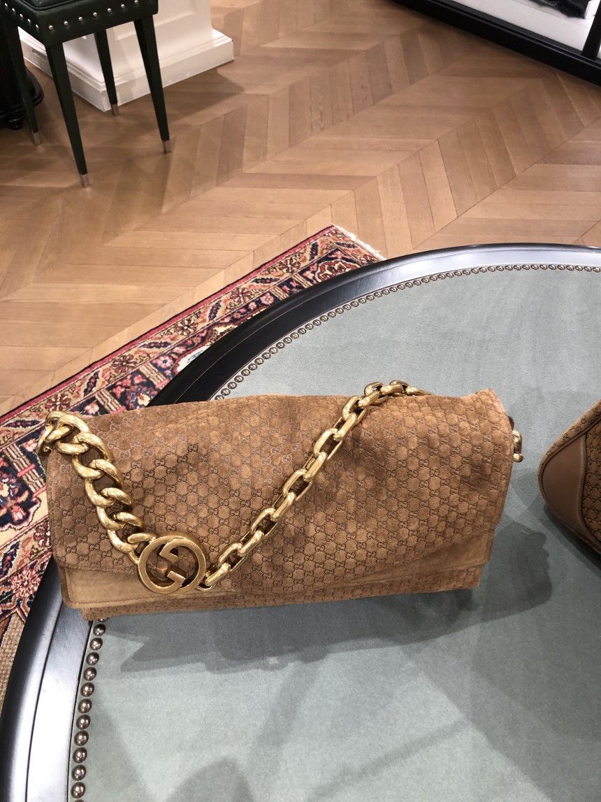 | Gucci GG 壓紋麂皮大號鏈條肩背包, |