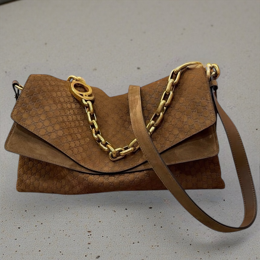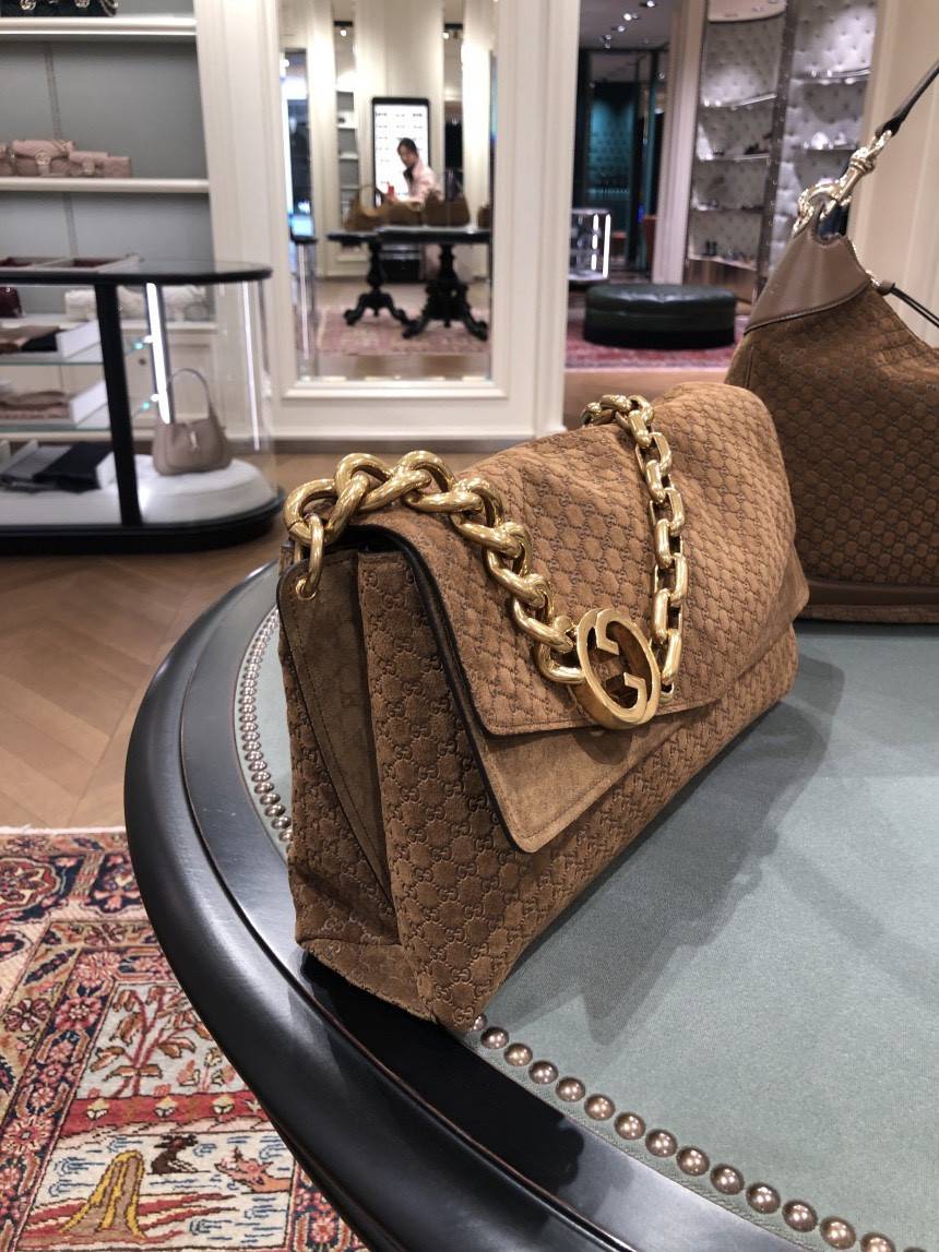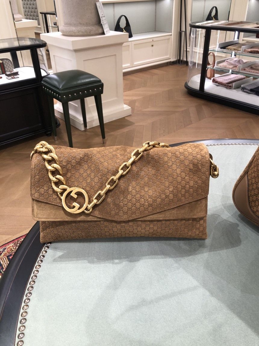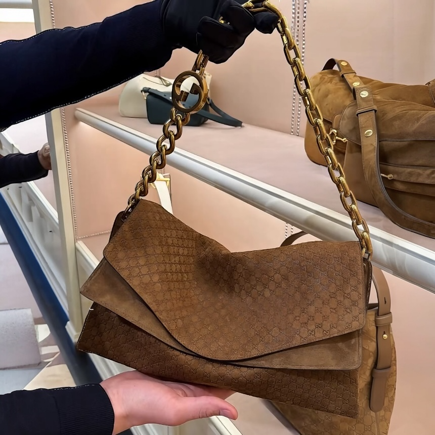 | Gucci GG 壓紋麂皮大號鏈條肩背包, |