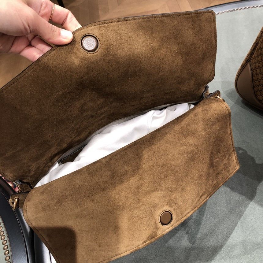 | 棕色 GG 壓紋麂皮展現復古奢雅氣質, |