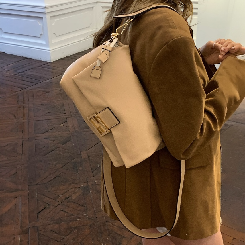 Fendi 8BR834 大款納帕軟皮 Mamma Baguette 貝貴包 奶茶色