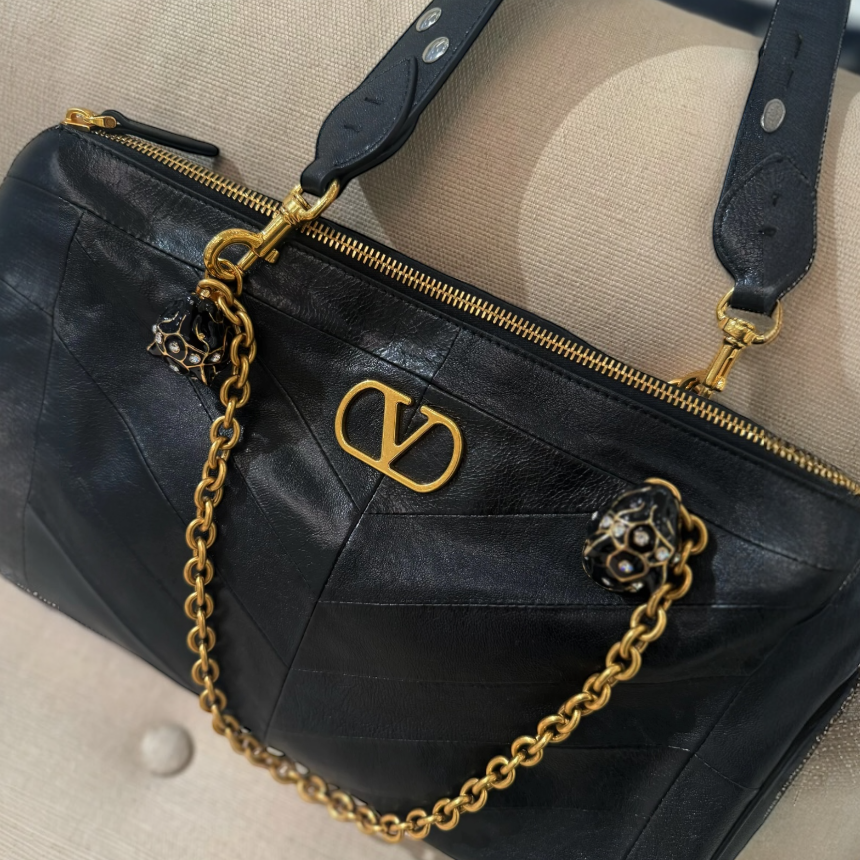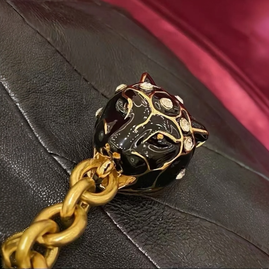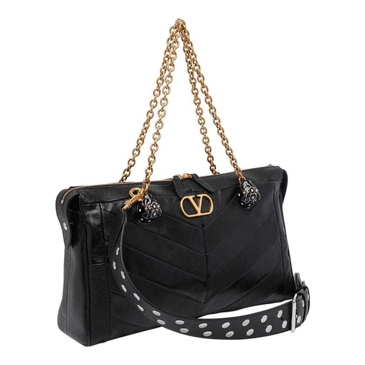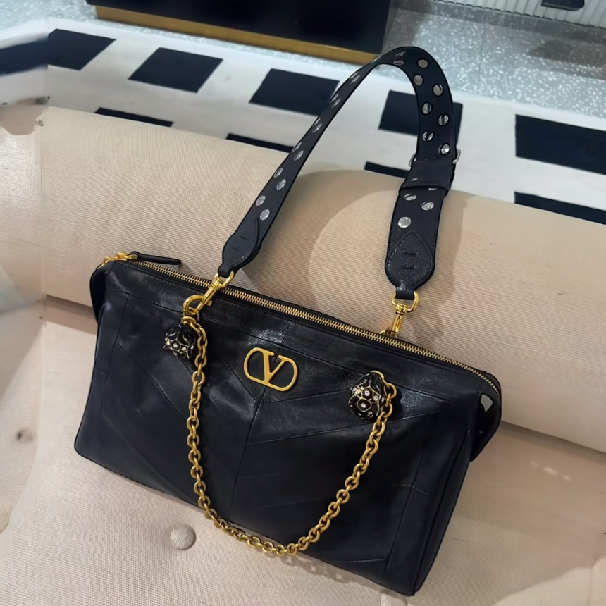 Valentino Garavani Panthea 羊皮黑豹托特包 黑色