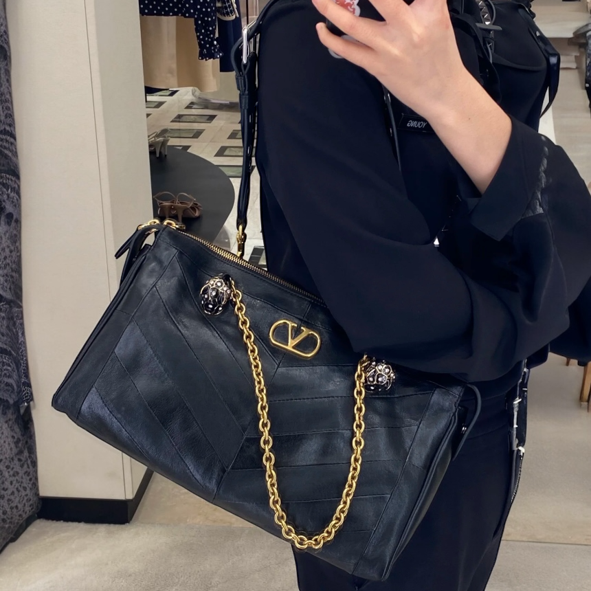 Valentino Garavani Panthea 羊皮黑豹托特包
