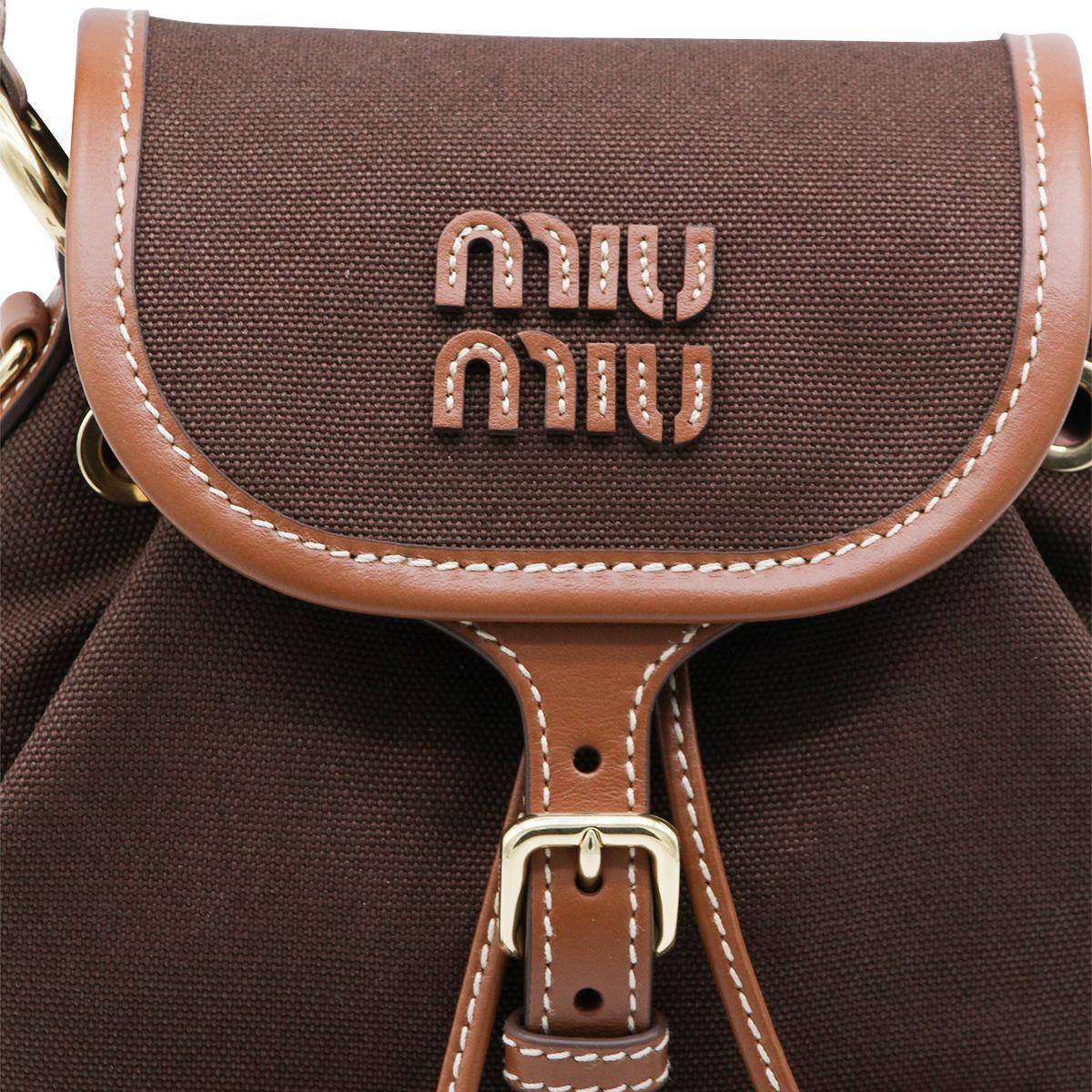 Miu Miu 5BZ043 中款帆布皮革拼接後背包 可可棕色/白蘭地色