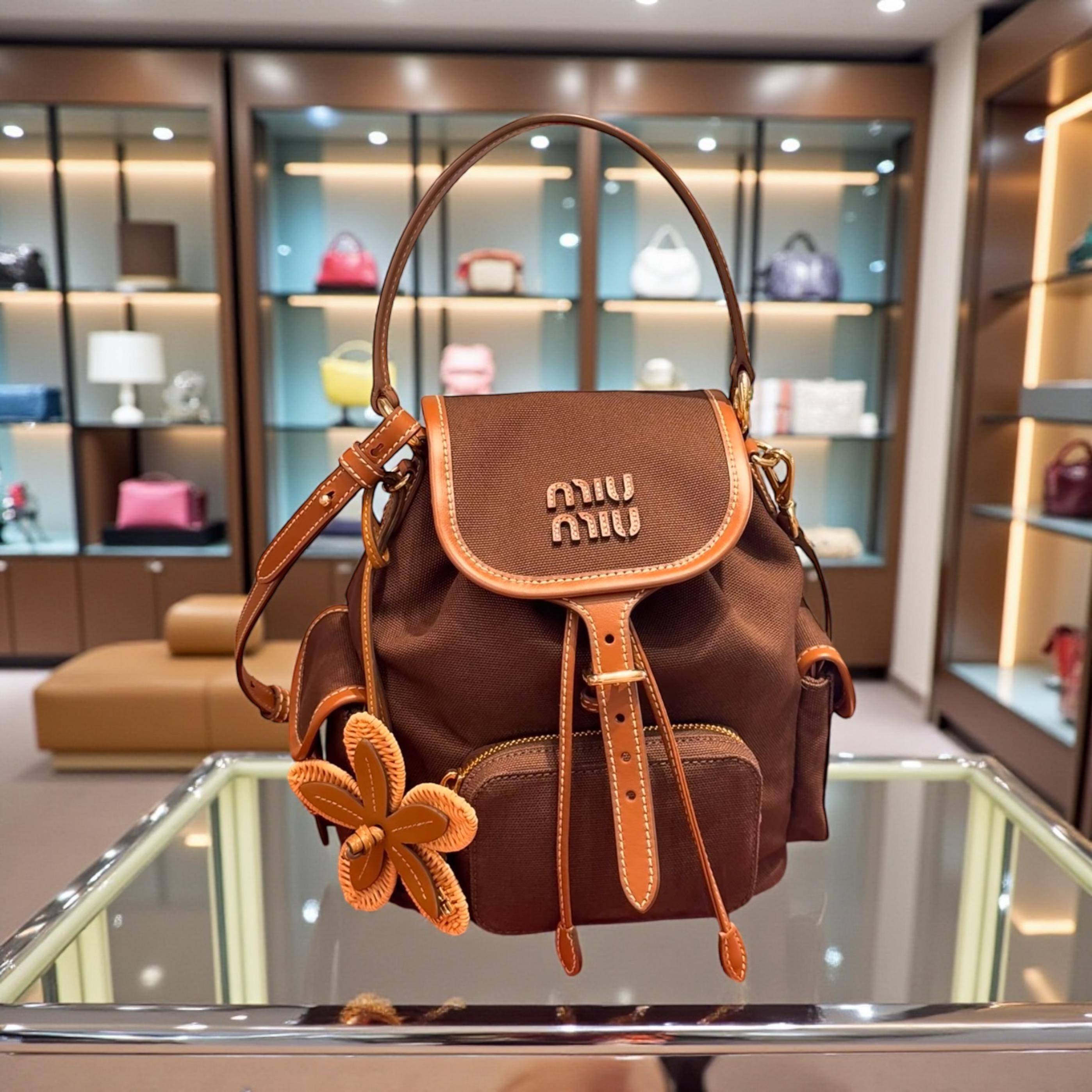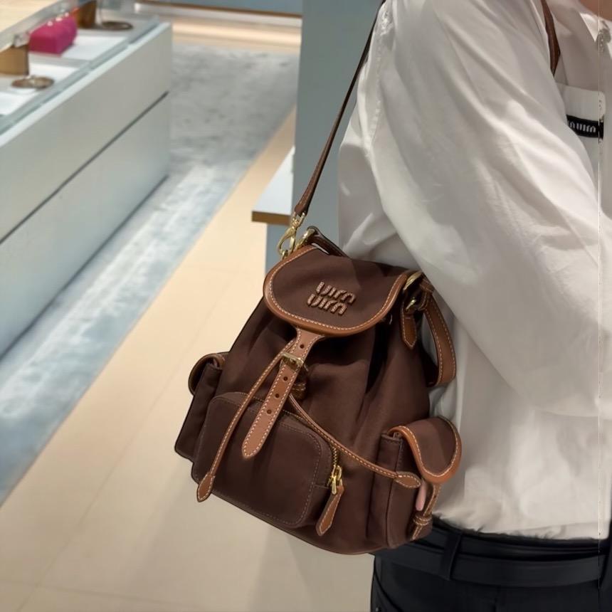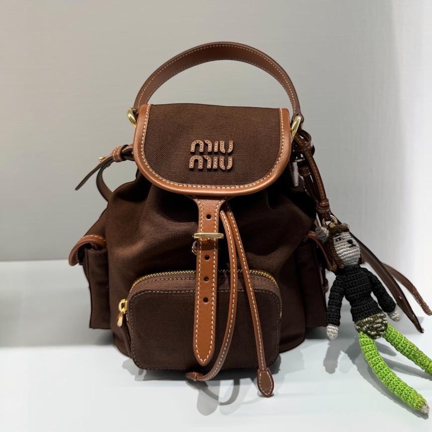 Miu Miu 5BZ043 中款帆布皮革拼接後背包