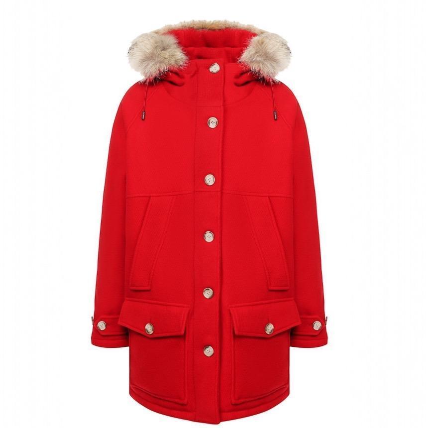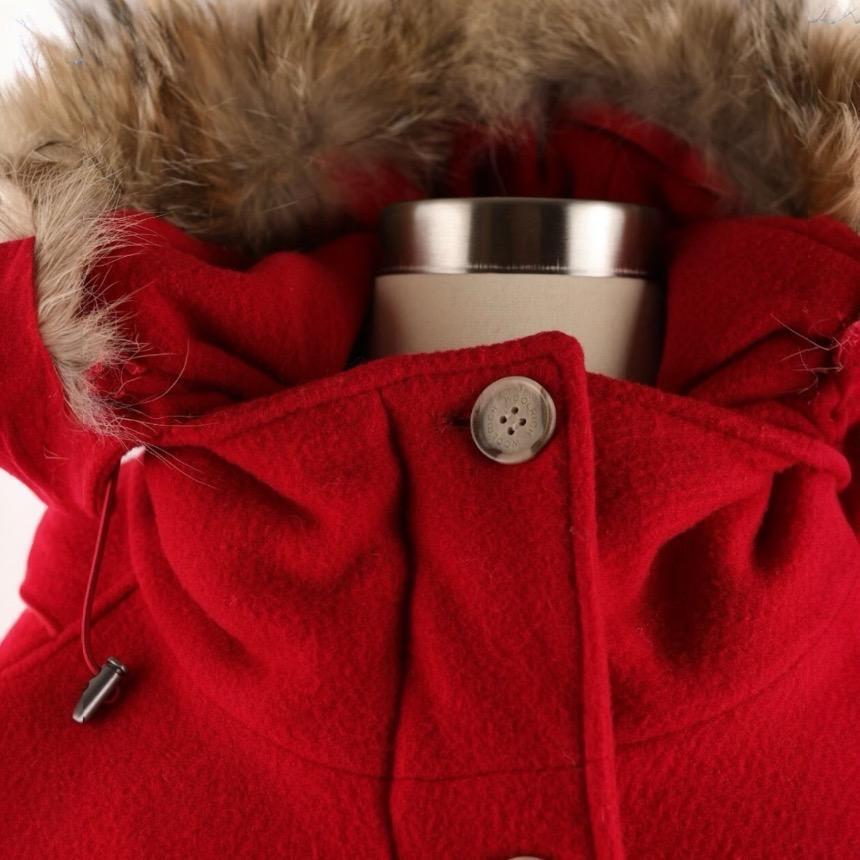Woolrich 女款 Tundra 羊毛及郊狼毛連帽派克外套 紅色 XS/S/M/L/XL