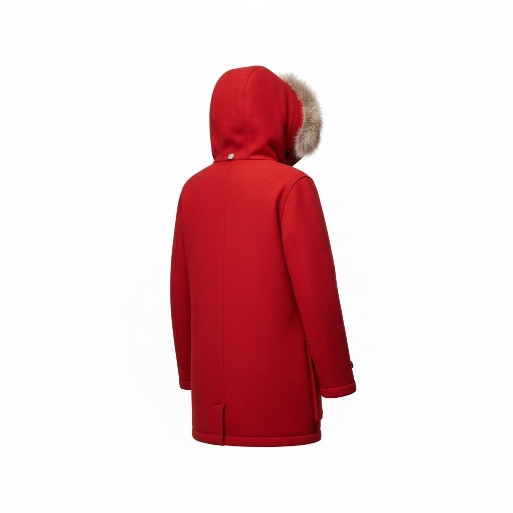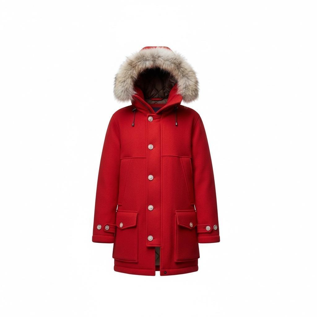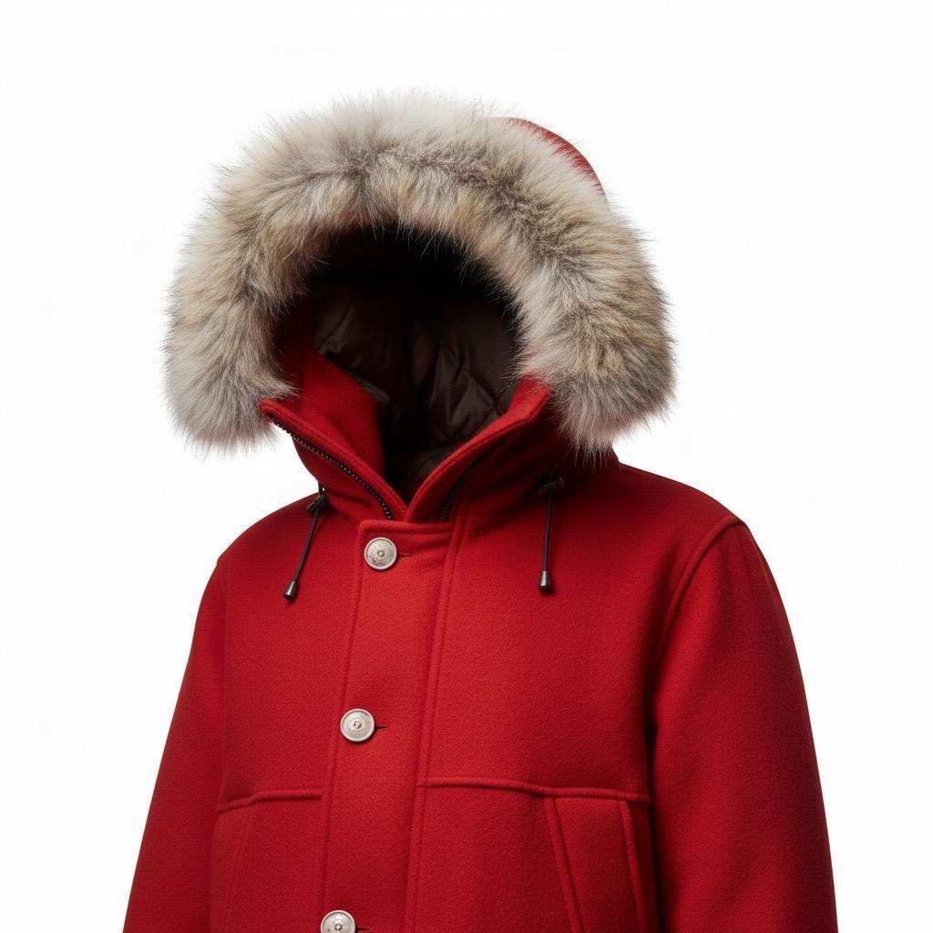 深型連帽搭配蓬鬆郊狼毛飾邊, 營造鮮明且高級的冬季氛圍。 |
