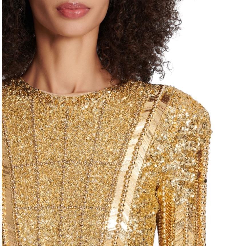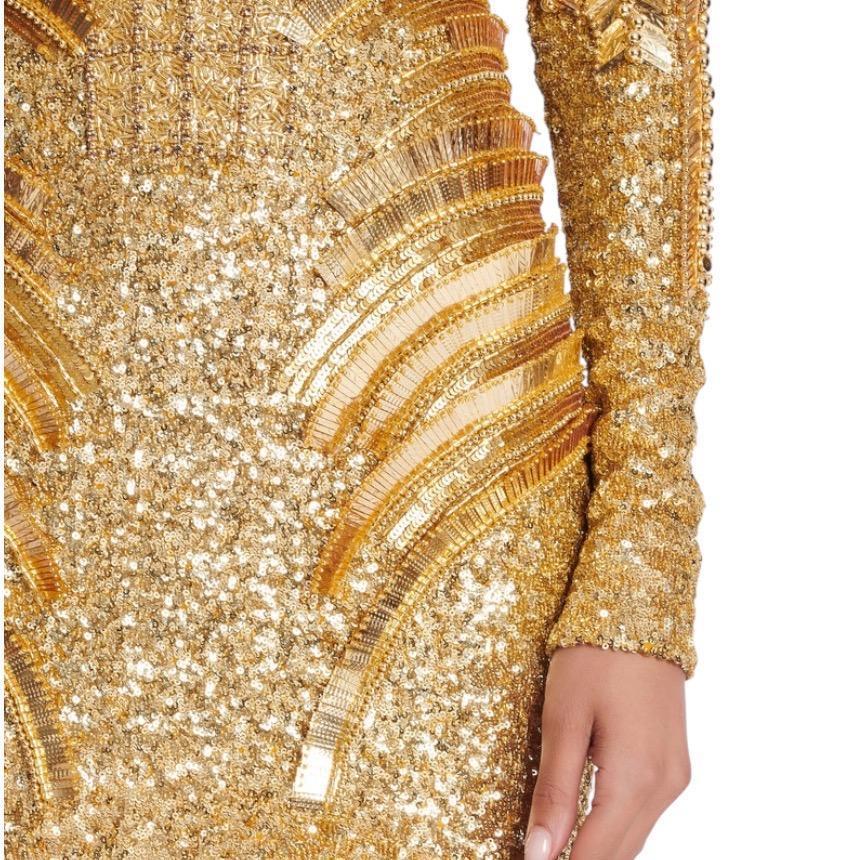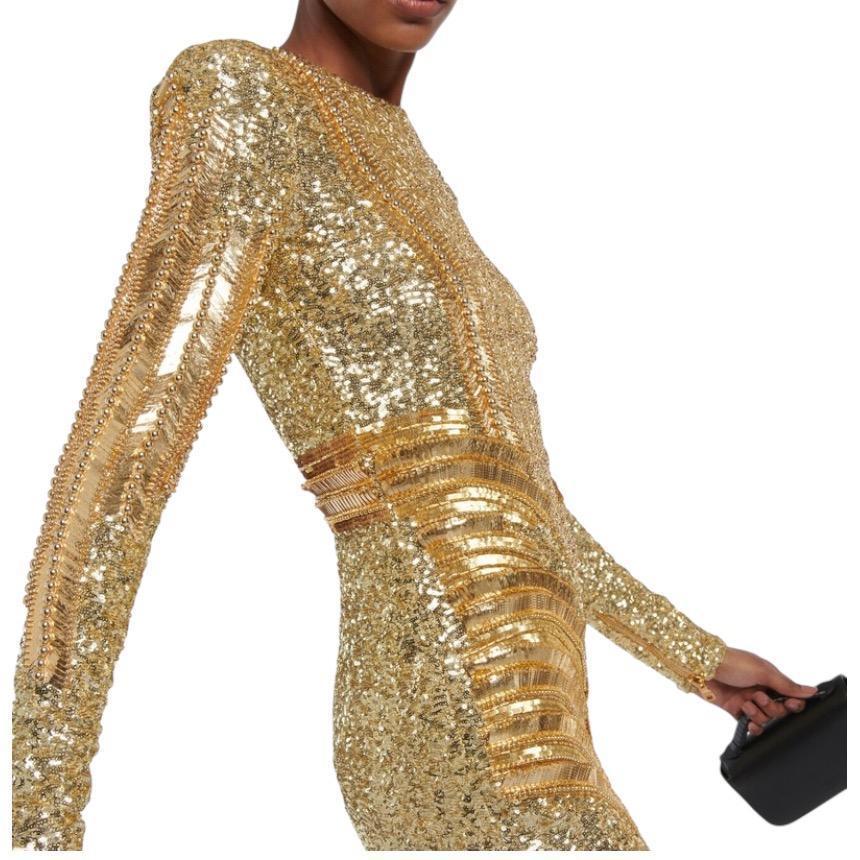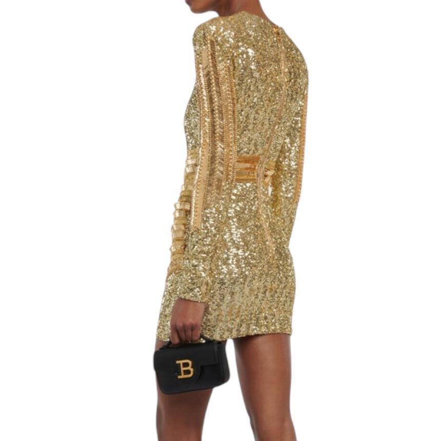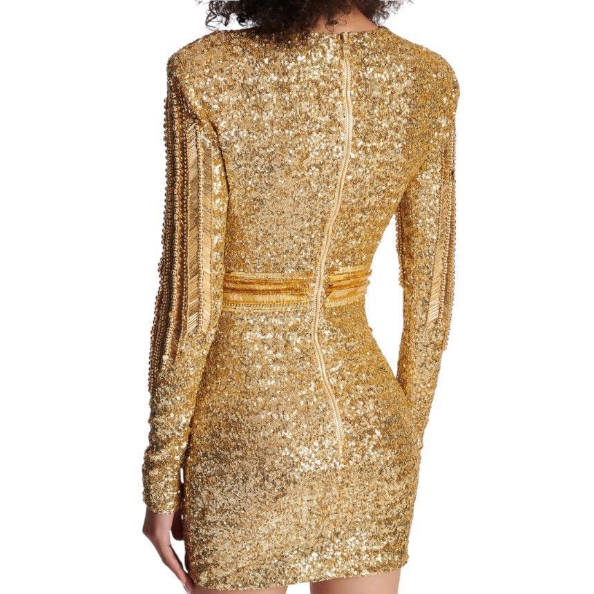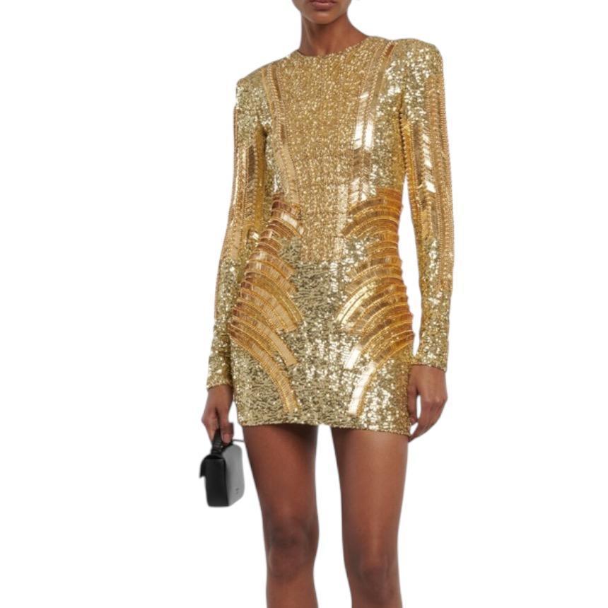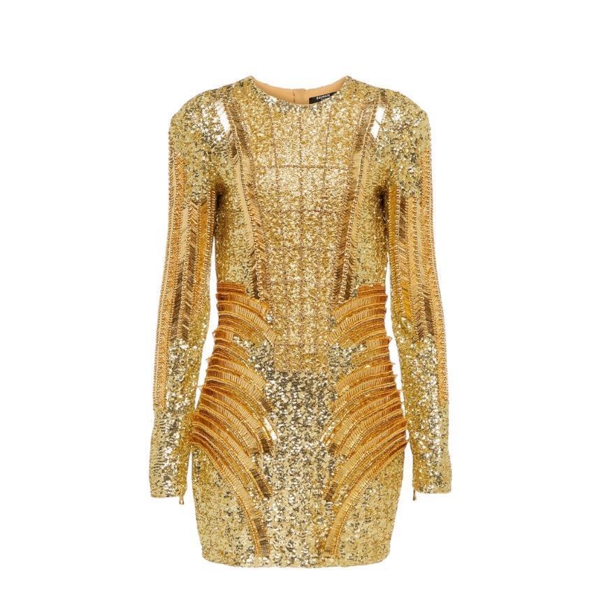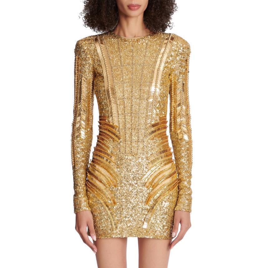 Balmain 女款亮片貼身迷你洋裝 香檳金 EU42 S