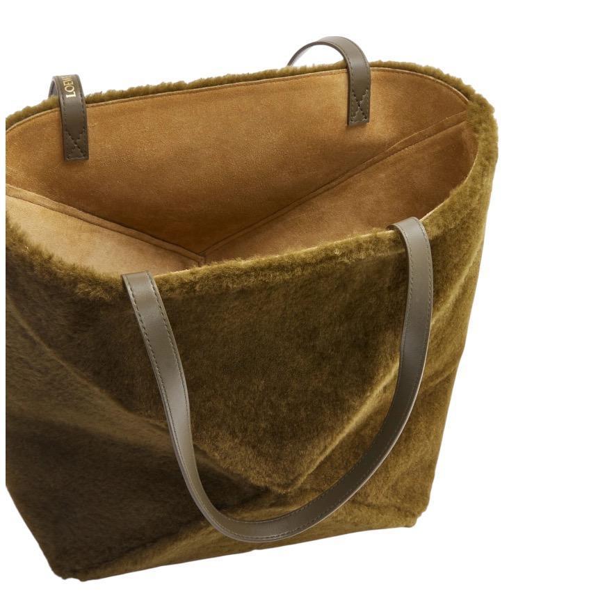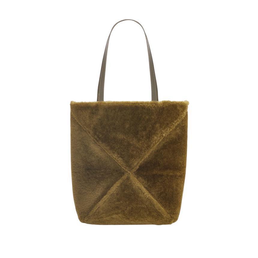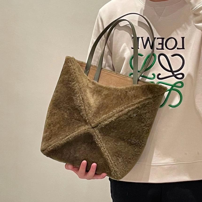 Loewe Puzzle Fold 羊毛拼接可折疊托特包 橄欖綠