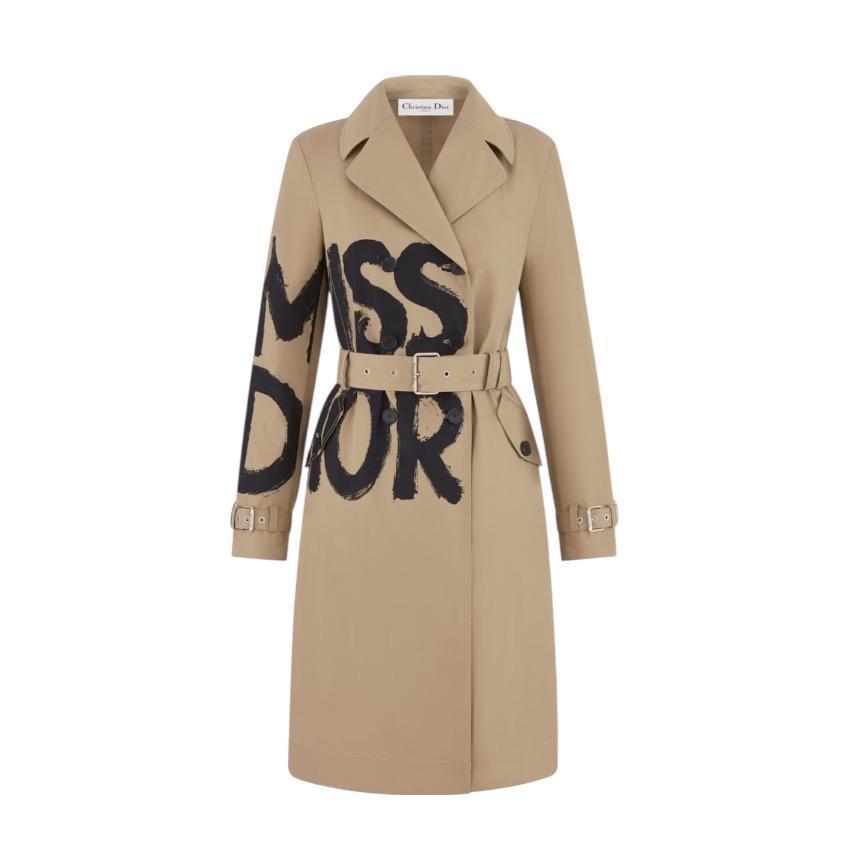 DIOR 女款 Miss Dior 塗鴉印花棉質華達呢風衣