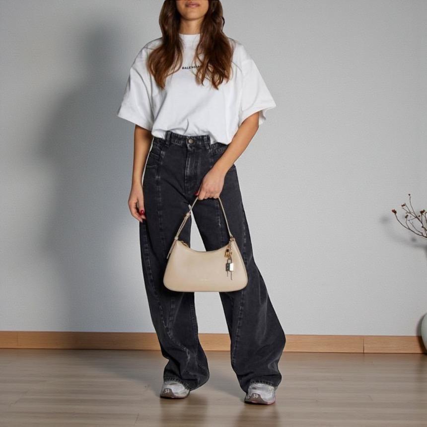 兩色金屬吊飾與掛鎖細節, 成為視覺焦點並增添層次。 |
