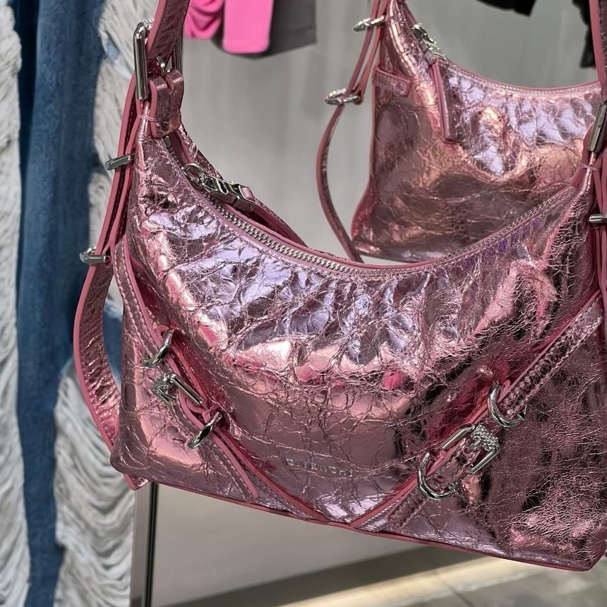 Givenchy 金屬鍍膜小牛皮迷你 Voyou 包 粉紅色
