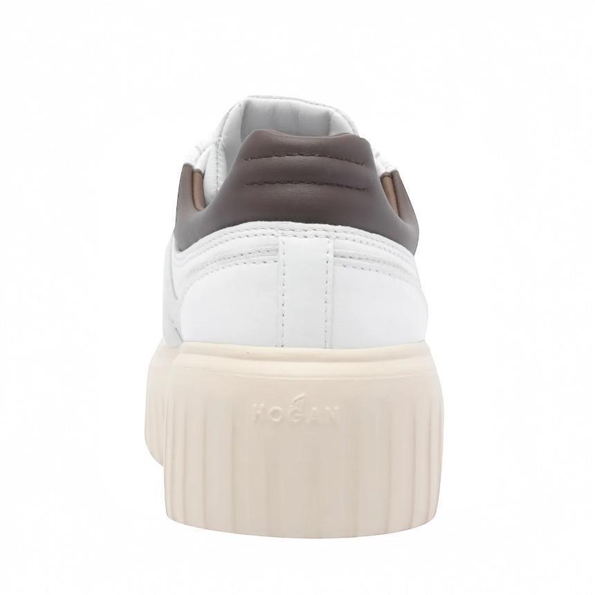 Hogan 女款 H-Stripes 光滑皮革6公分厚底餅乾運動鞋 白色配灰棕色 EU37/37.5/38/38.5/39