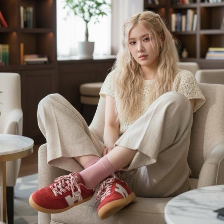 | 橘色鞋底形成鮮明對比 |