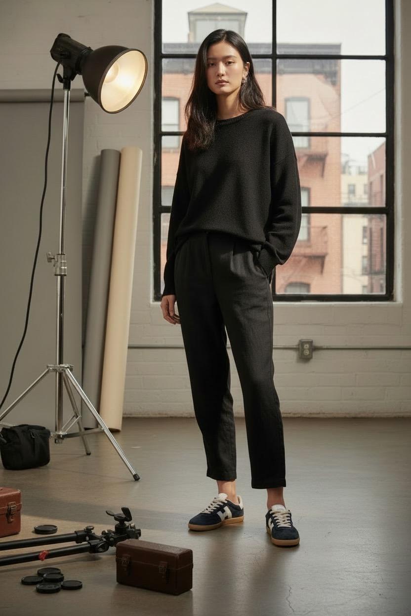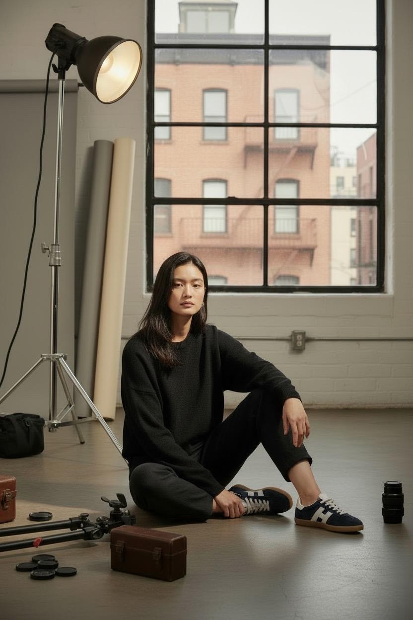 Hogan 女款 Cool 絨面革網眼拼接運動鞋 黑色/底高2.5公分 IT35/36/36.5/37.5/38/38.5/41