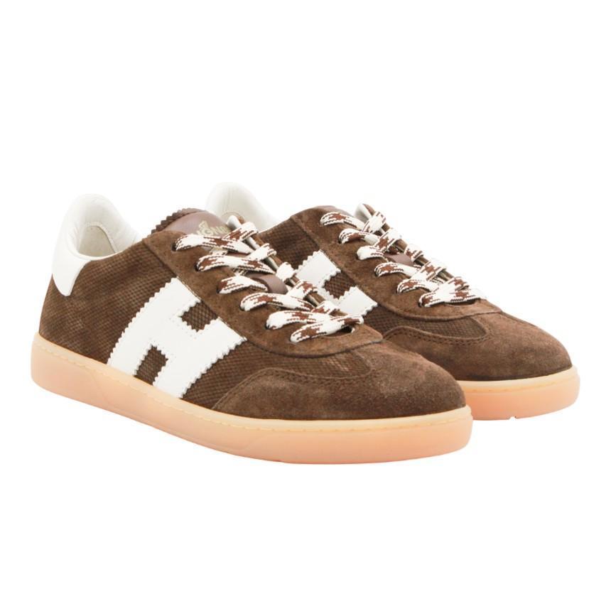 Hogan 女款 Cool 絨面革網眼拼接運動鞋 深棕色/底高2.5公分 IT36/37/37.5/38/38.5/39/40