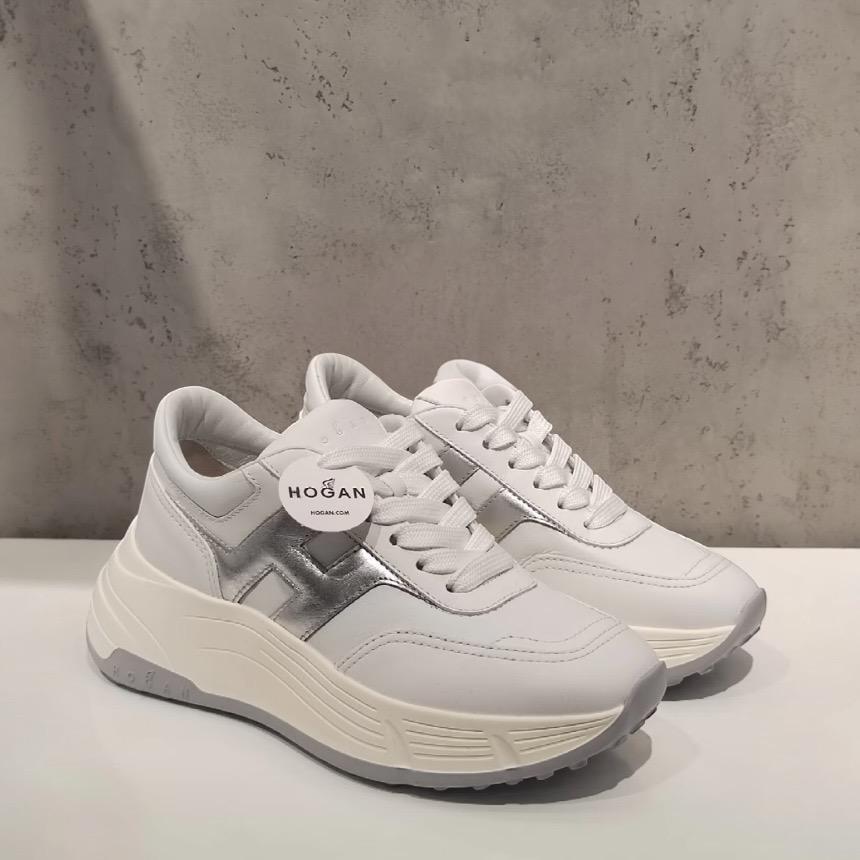 Hogan 女款 Hi-Fi 納帕皮革厚底雲朵運動鞋 白色銀色H/底高6.5公分 IT36/36.5/37/37.5/38/38.5/39/40