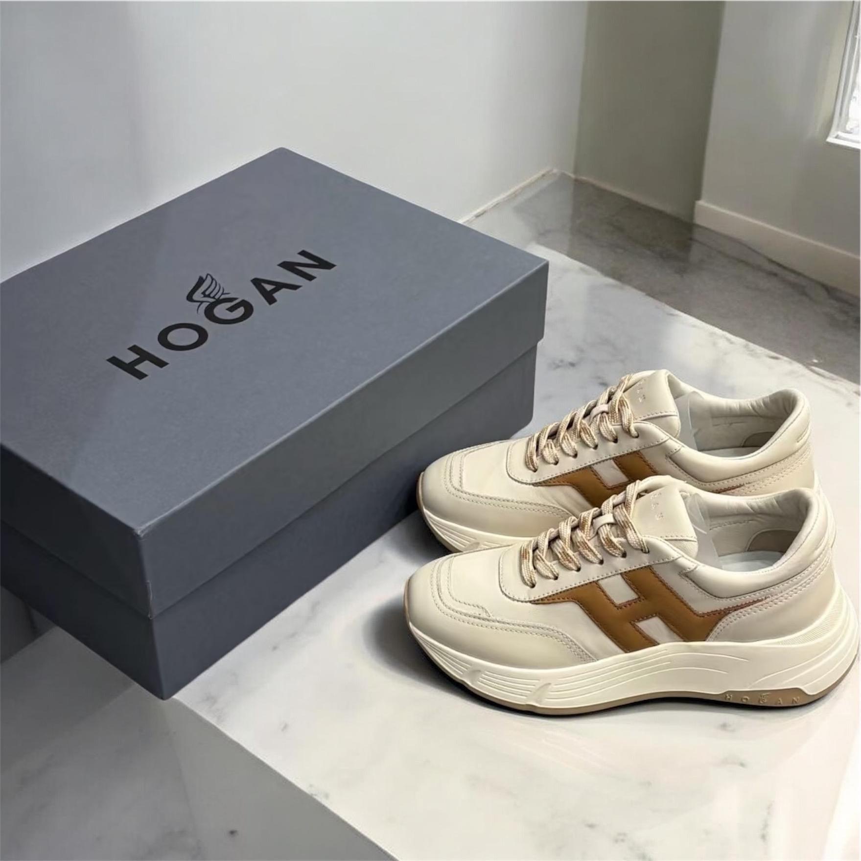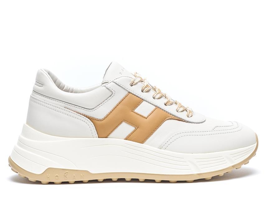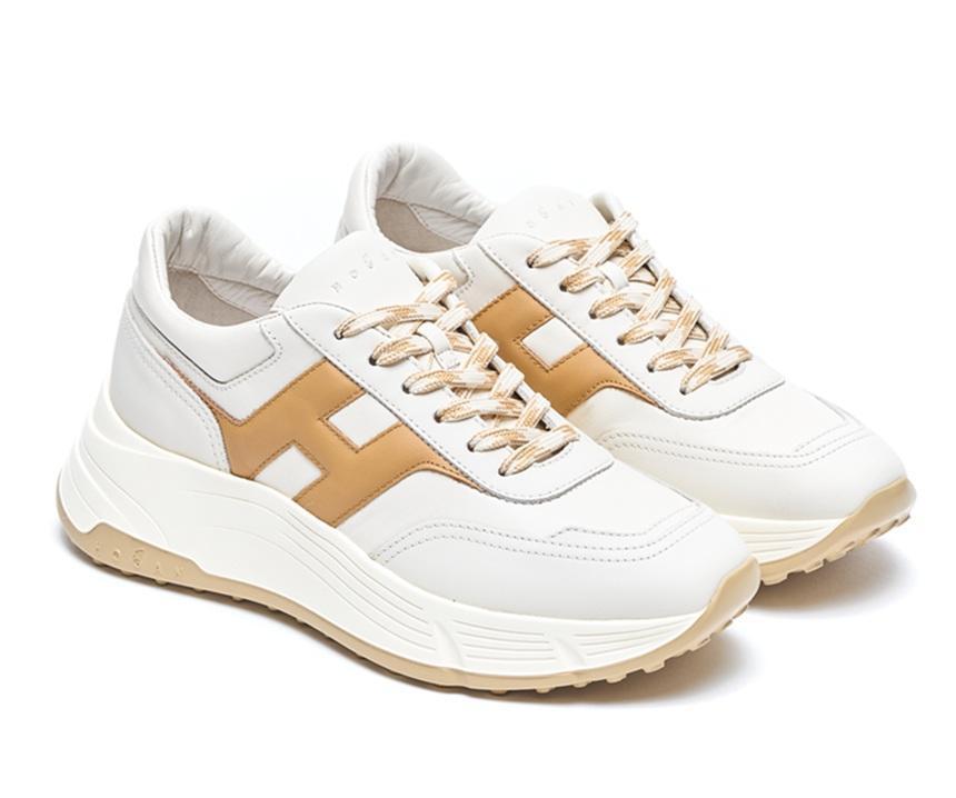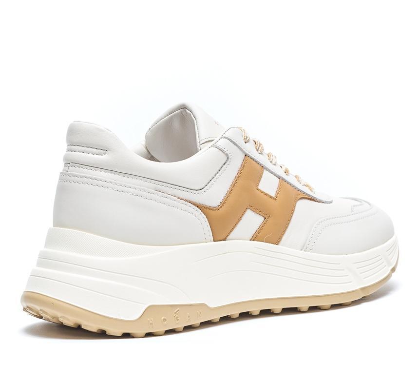 Hogan 女款 Hi-Fi 納帕皮革厚底雲朵運動鞋 白色焦糖色H/底高6.5公分 IT37/38/38.5/39