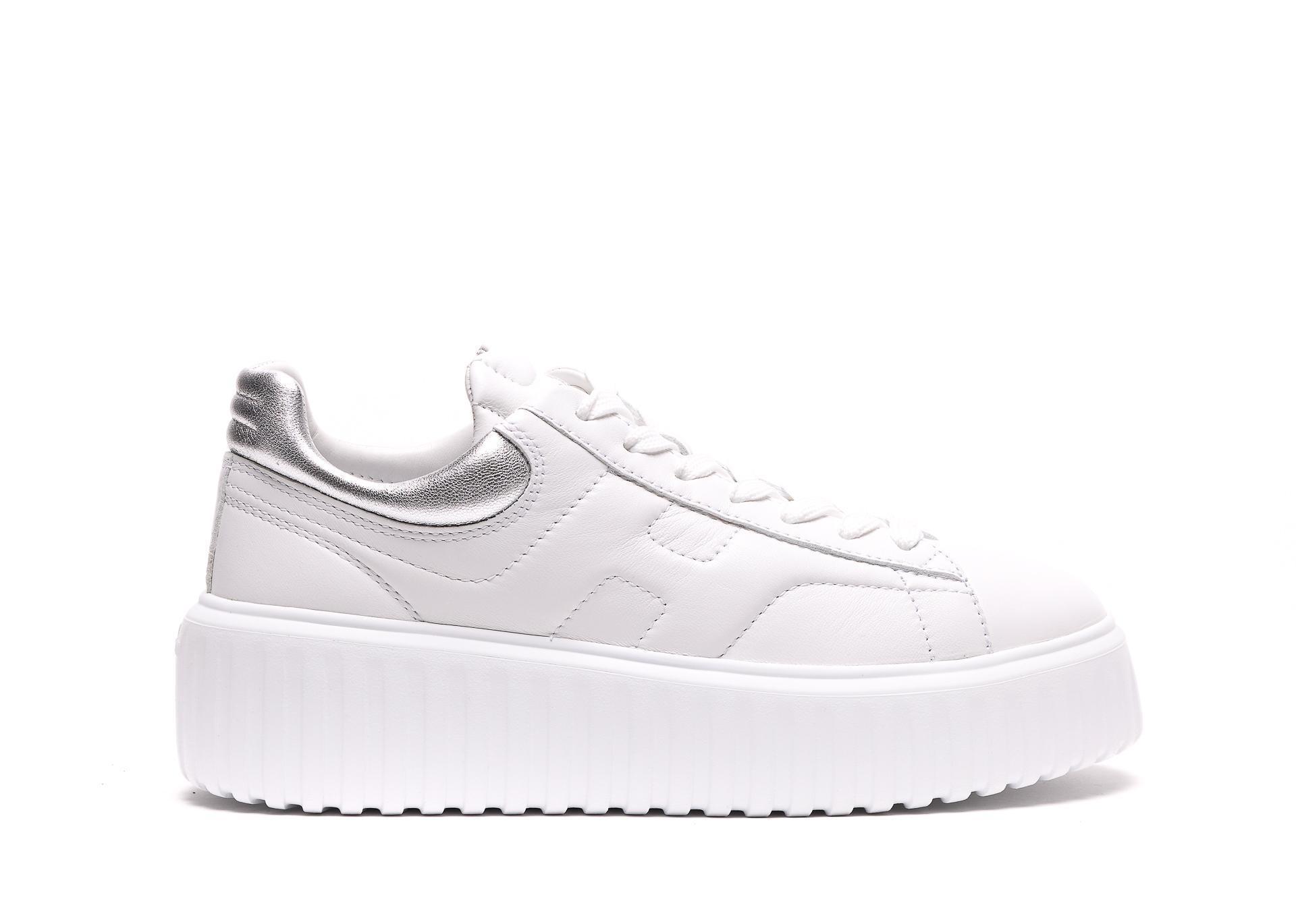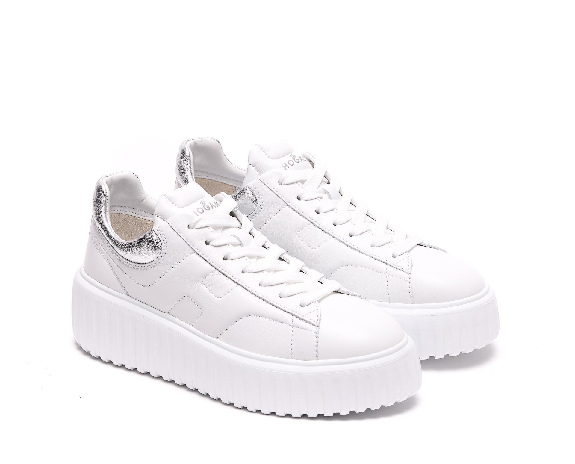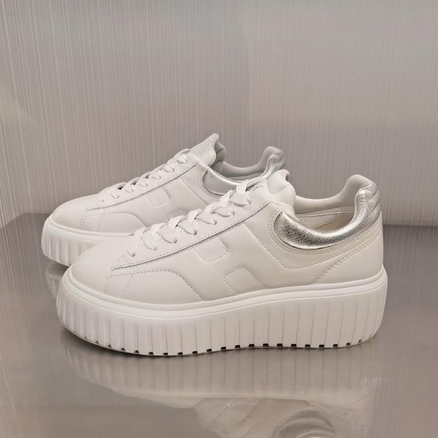Hogan 女款 H-Stripes 光滑皮革6公分厚底餅乾運動鞋 白色配銀尾 EU35/36/36.5/37/37.5/38/38.5/39/40