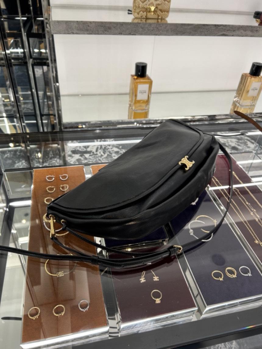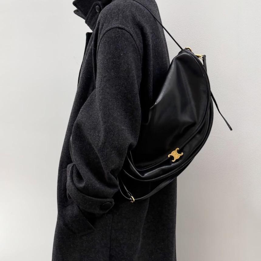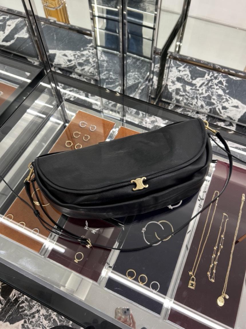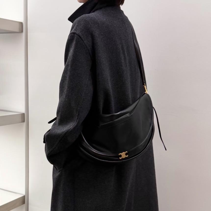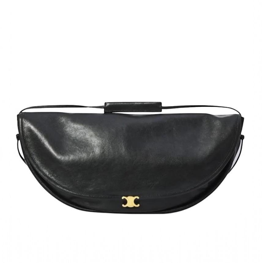 Celine 124142 Soft Triomphe Halfmoon亮面小羊皮半月包 黑色