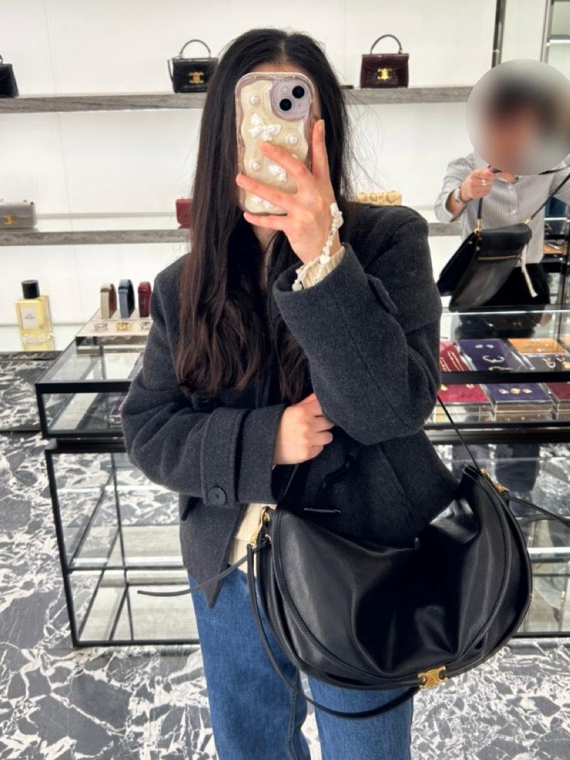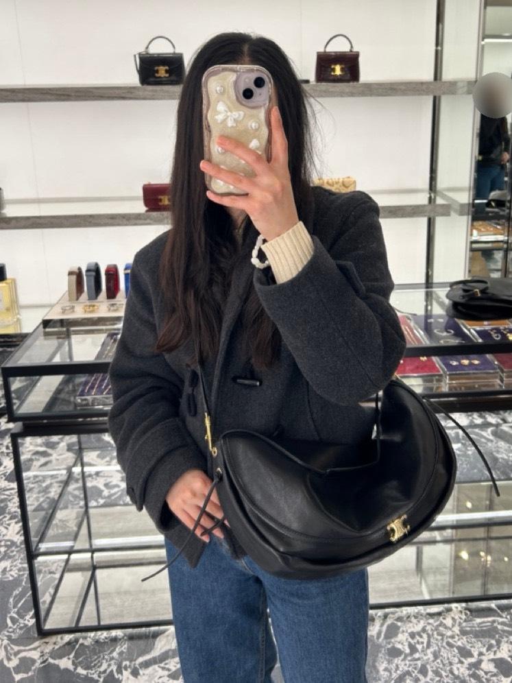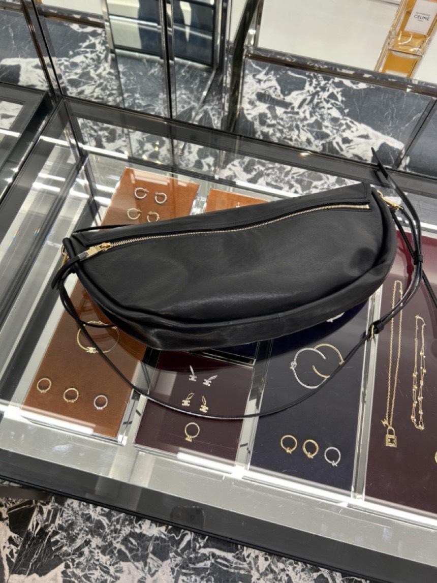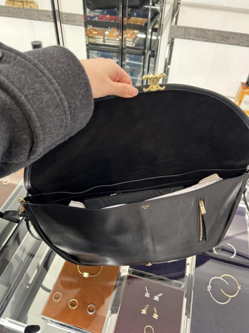 Celine 124142 Soft Triomphe Halfmoon亮面小羊皮半月包 黑色
