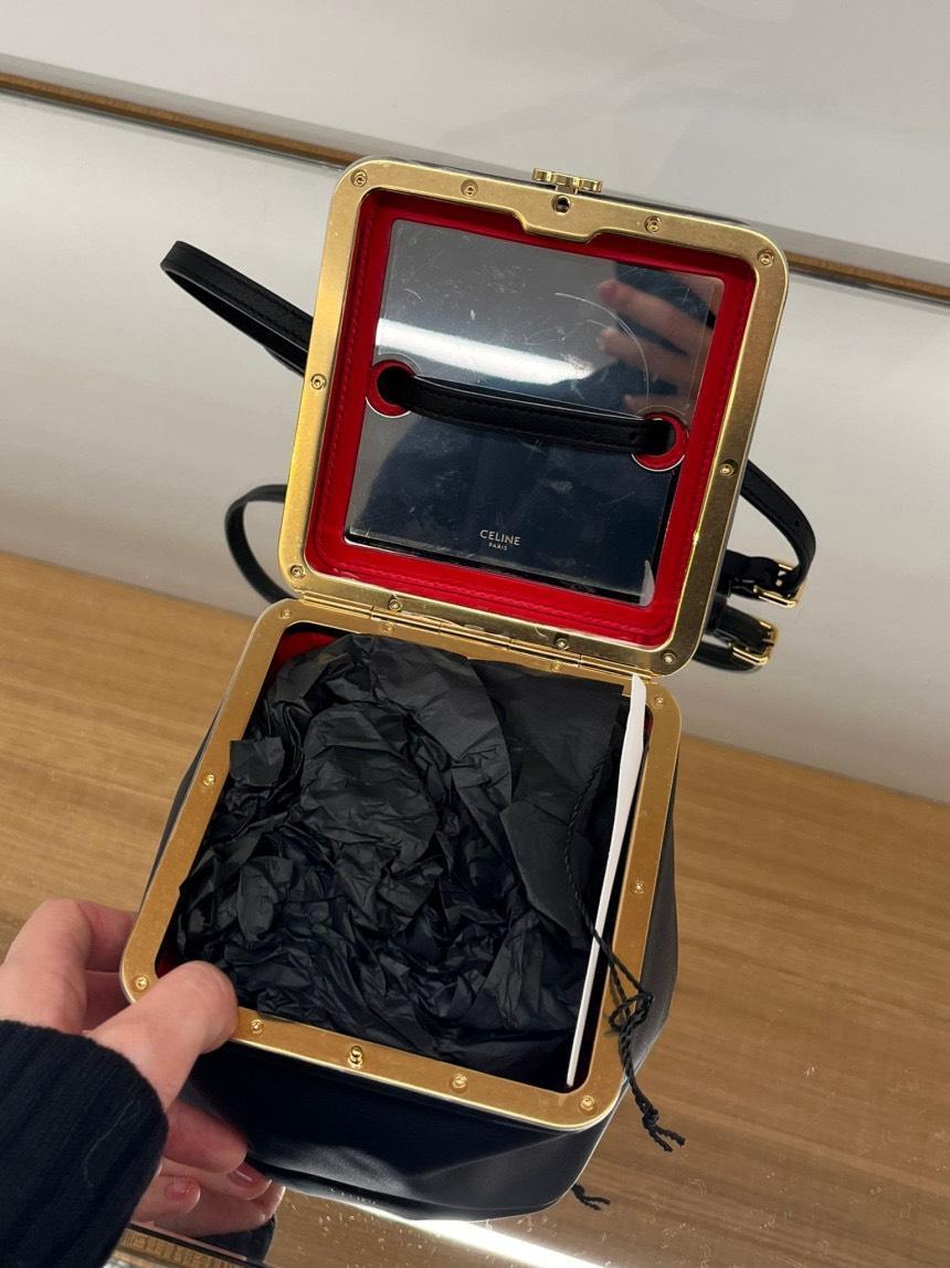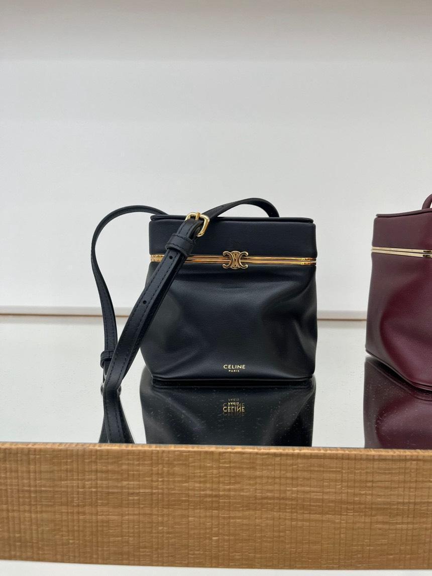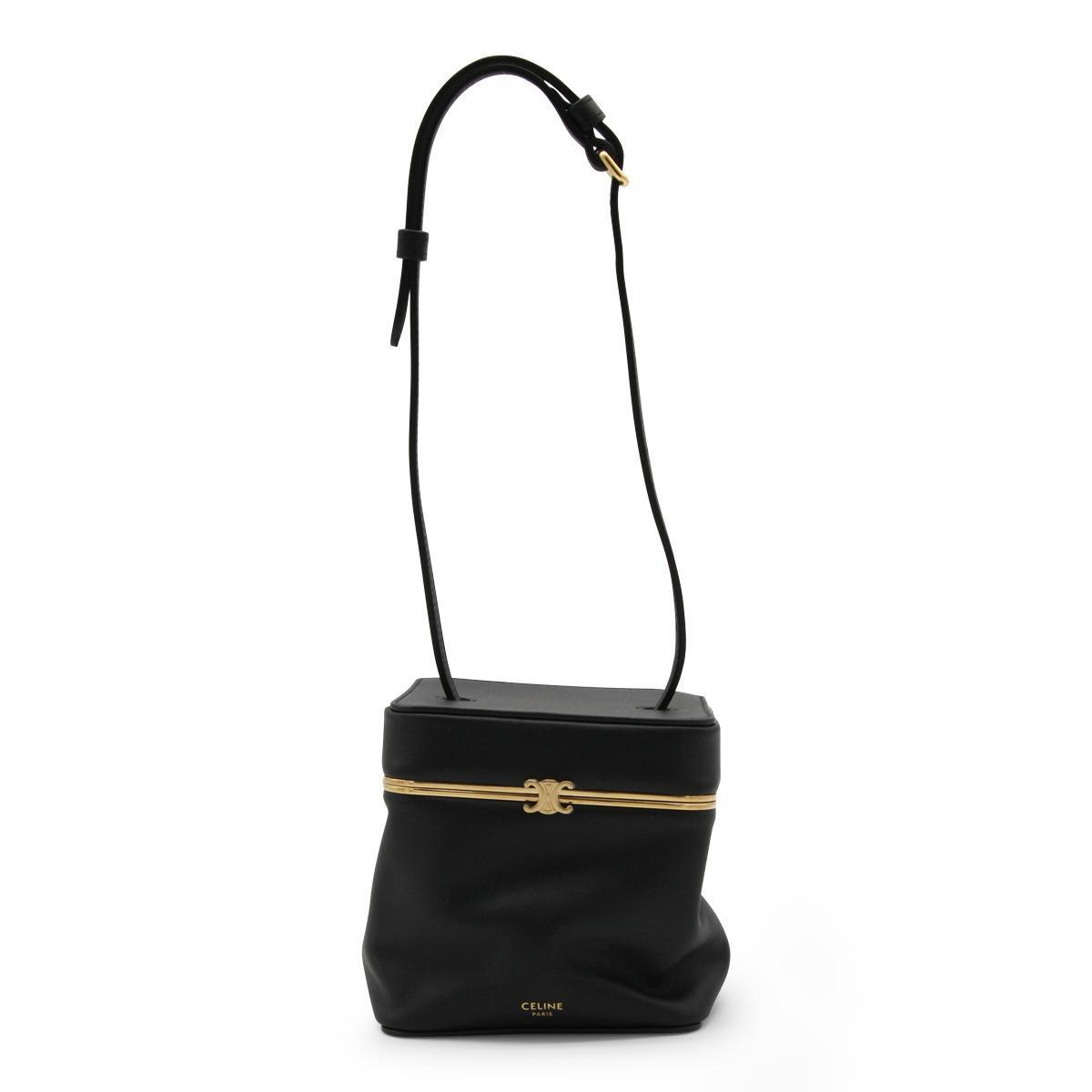Celine 124232 Triomphe Frame 凱旋門小款柔軟小牛皮盒子包 黑色