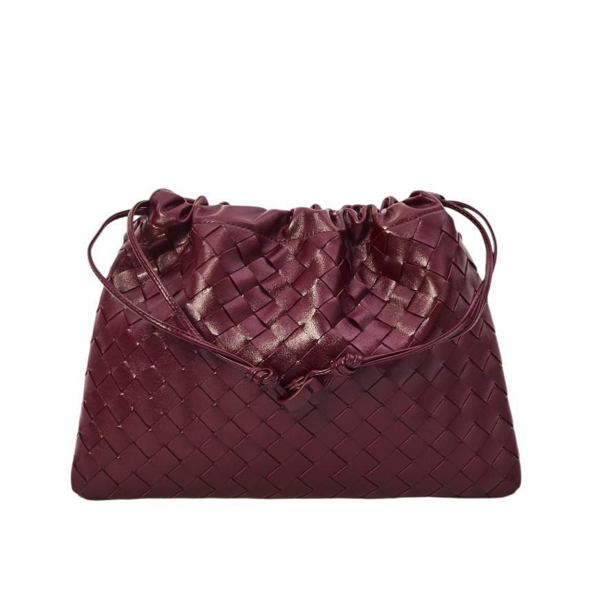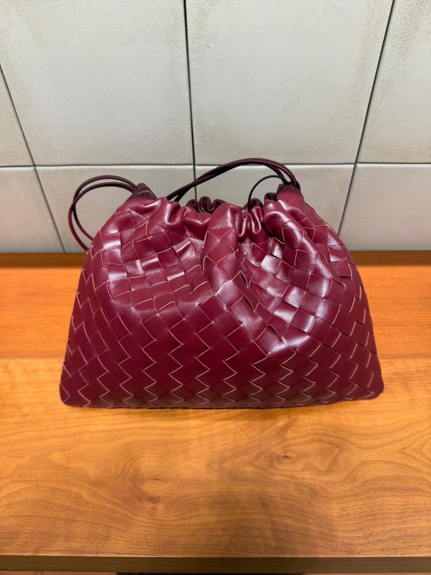 Bottega Veneta 796728 編織小牛皮抽繩福袋包 巴羅洛酒紅色
