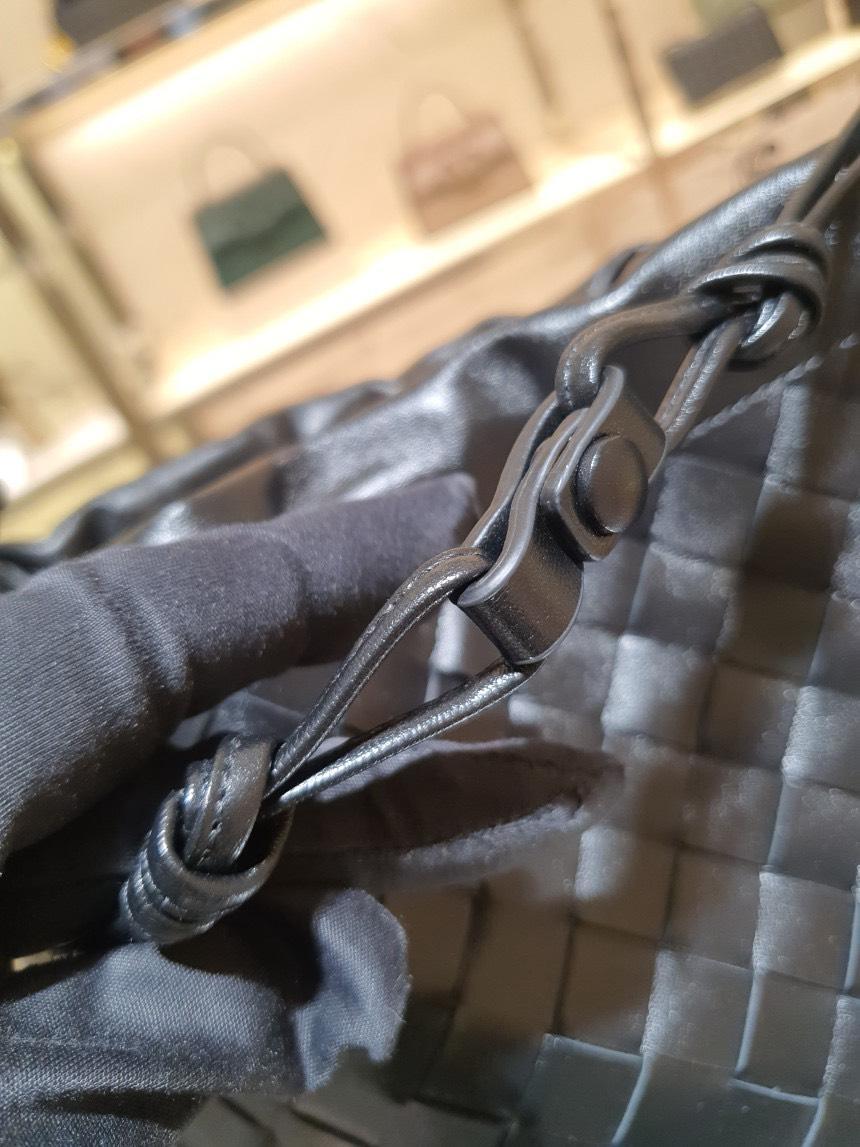 Bottega Veneta 796728 編織小牛皮抽繩福袋包 黑色
