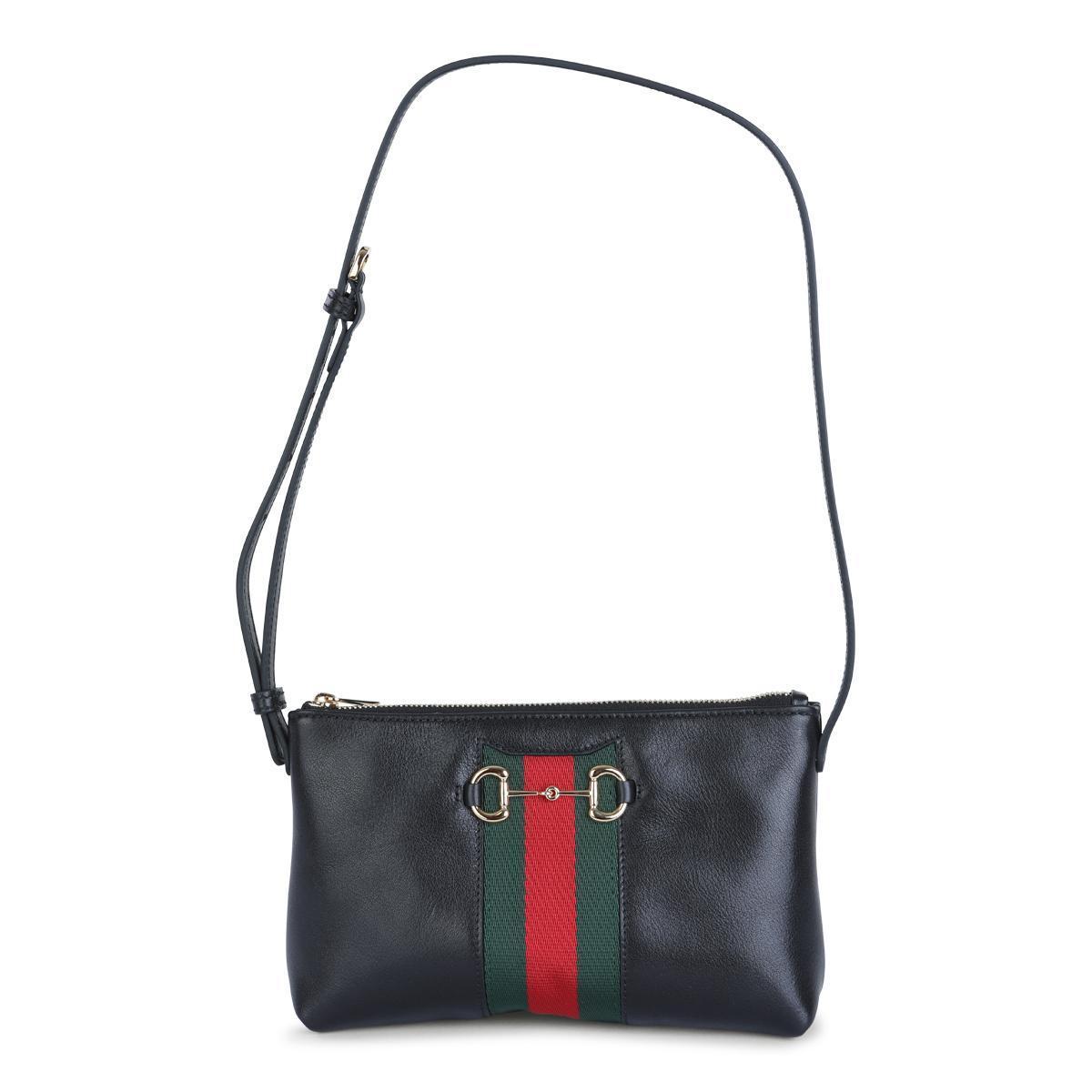Gucci 867130 Horsebit Web 馬銜釦迷你肩背包 黑色