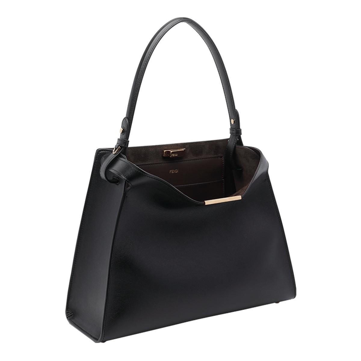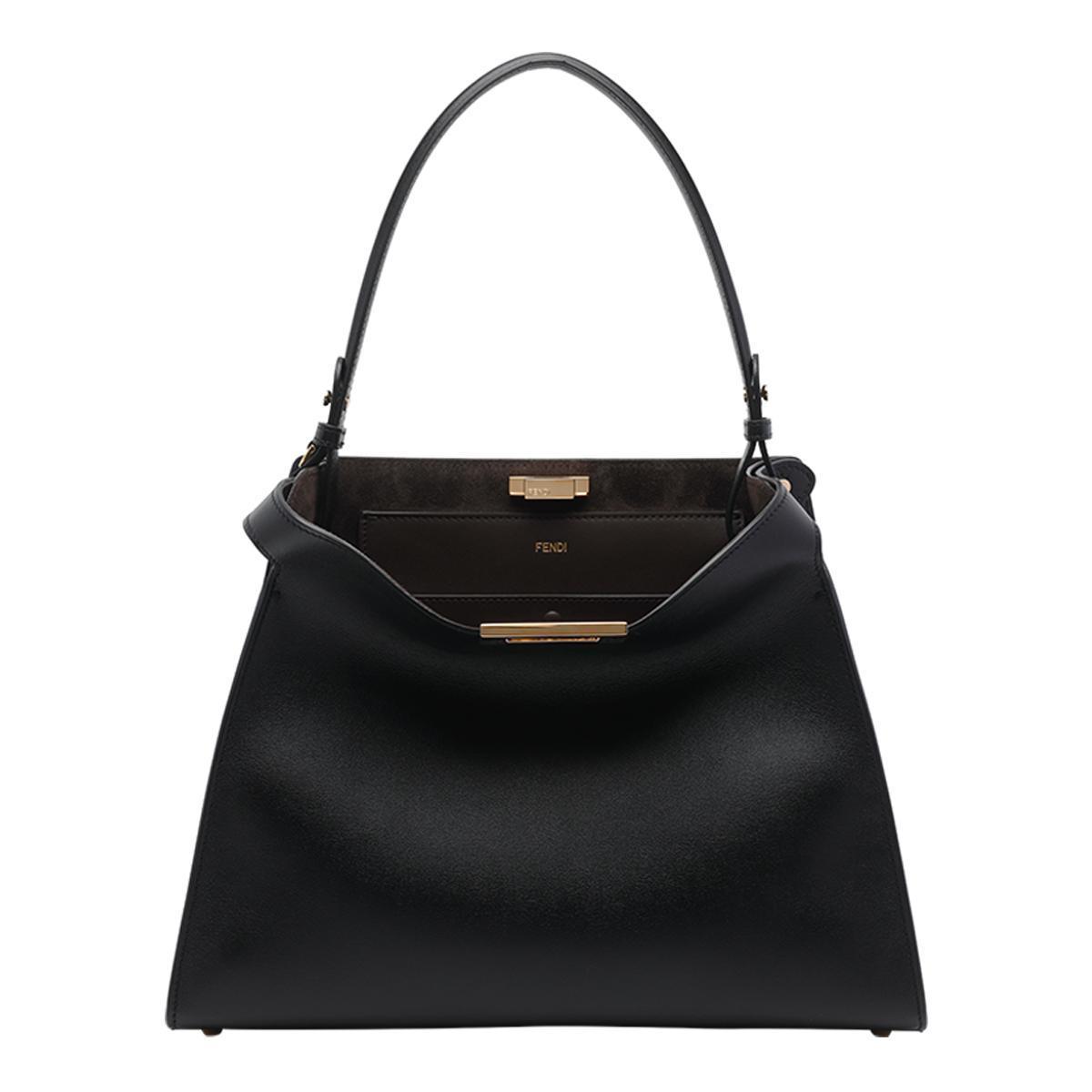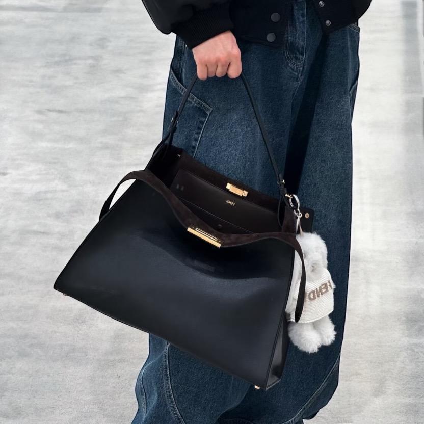 Fendi Way 8BN368 中款黑色皮革和巧克力色麂皮包