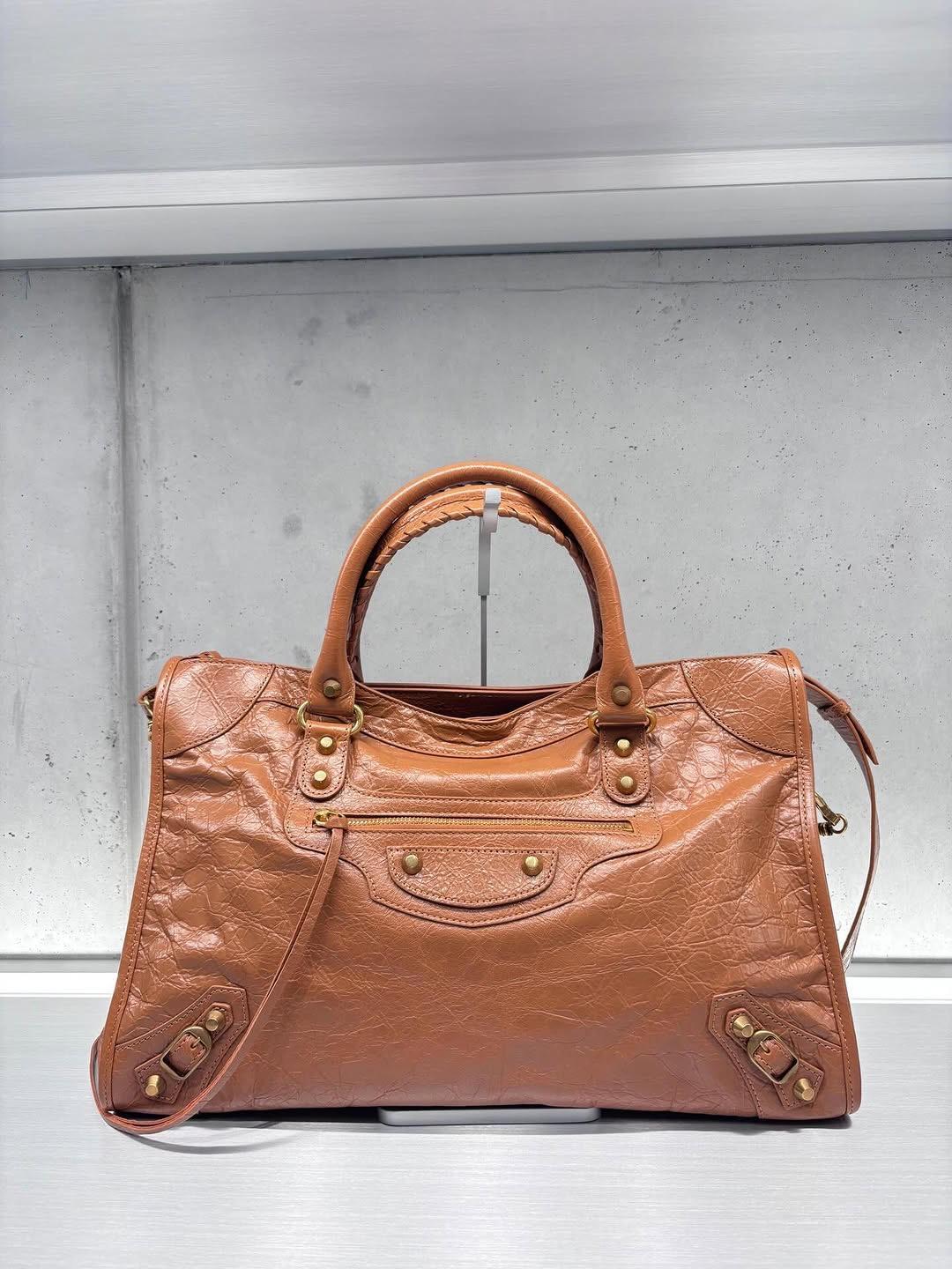 Balenciaga 823058 Le City 小羊皮中款機車包 駝色金釦