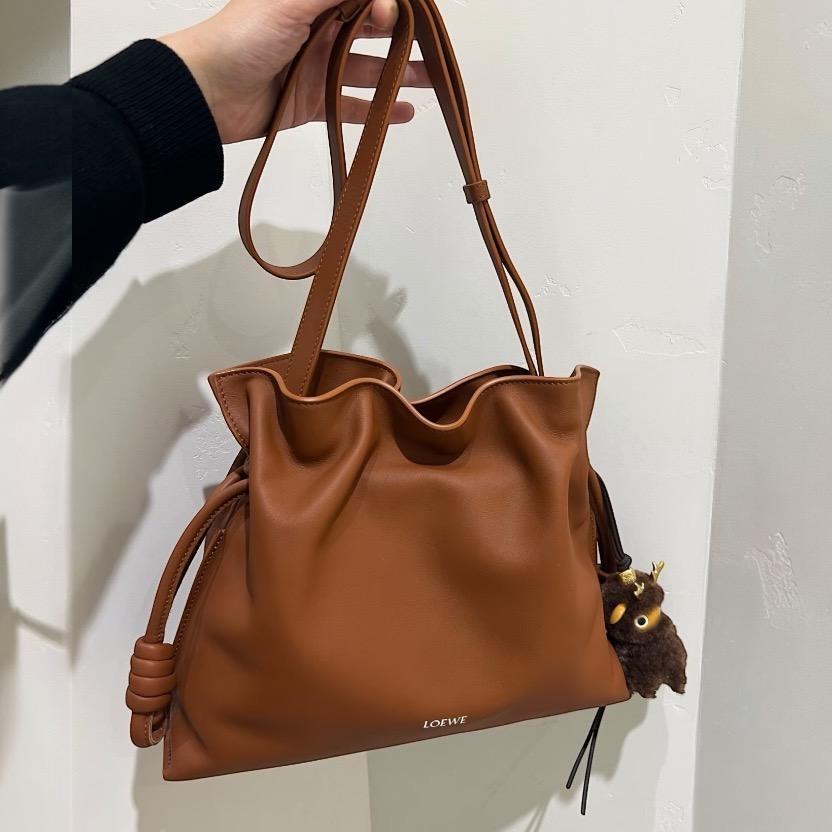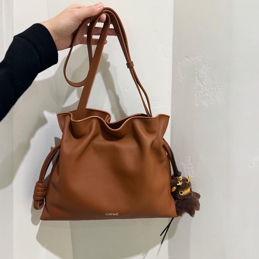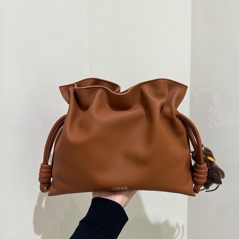 Loewe 小款 Flamenco Nappa 小牛皮束口福袋包 松鼠棕
