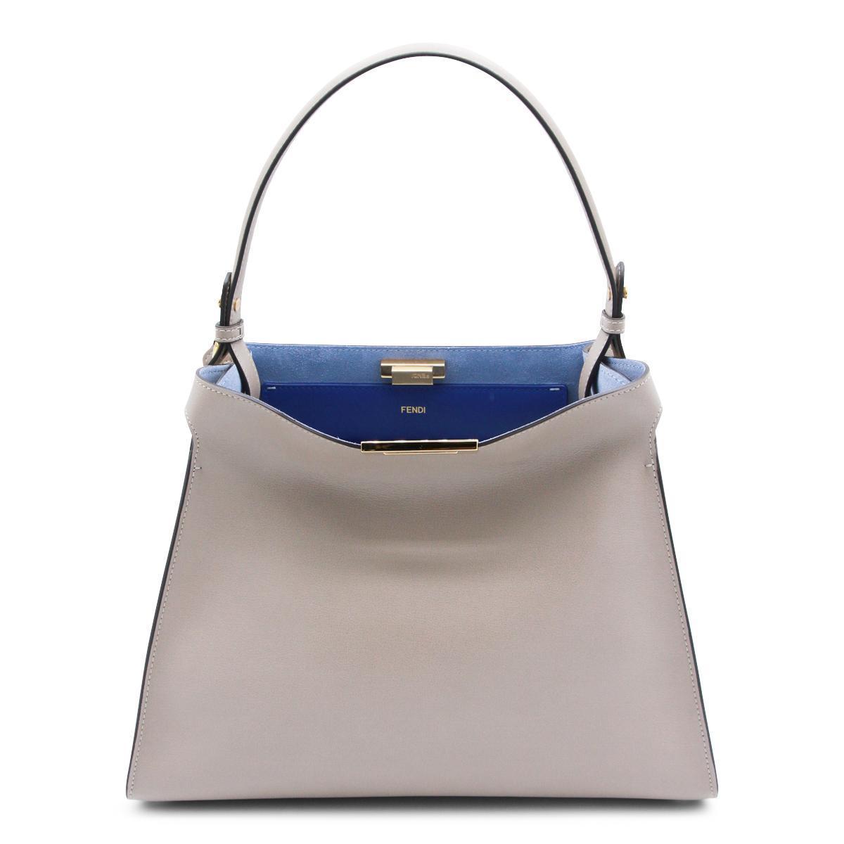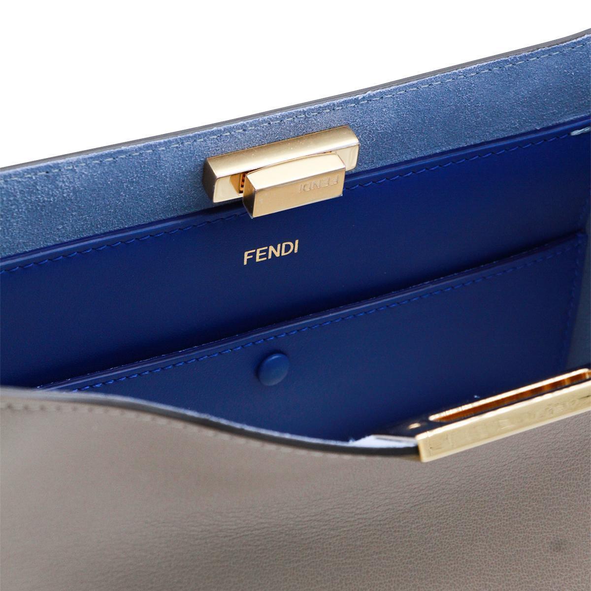 Fendi Way 8BN368 中款鴿子灰色皮革和霓虹藍色麂皮包