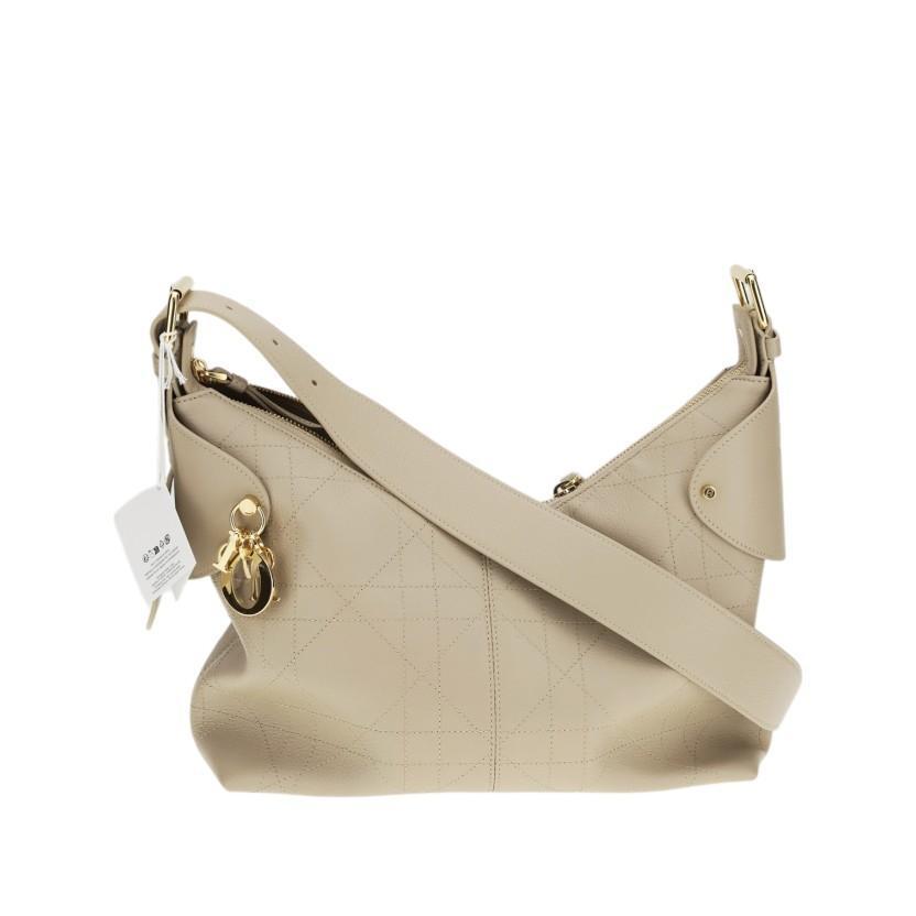 Diorr 中款大籐格紋粒面小牛皮 Voyage 包 淡米色
